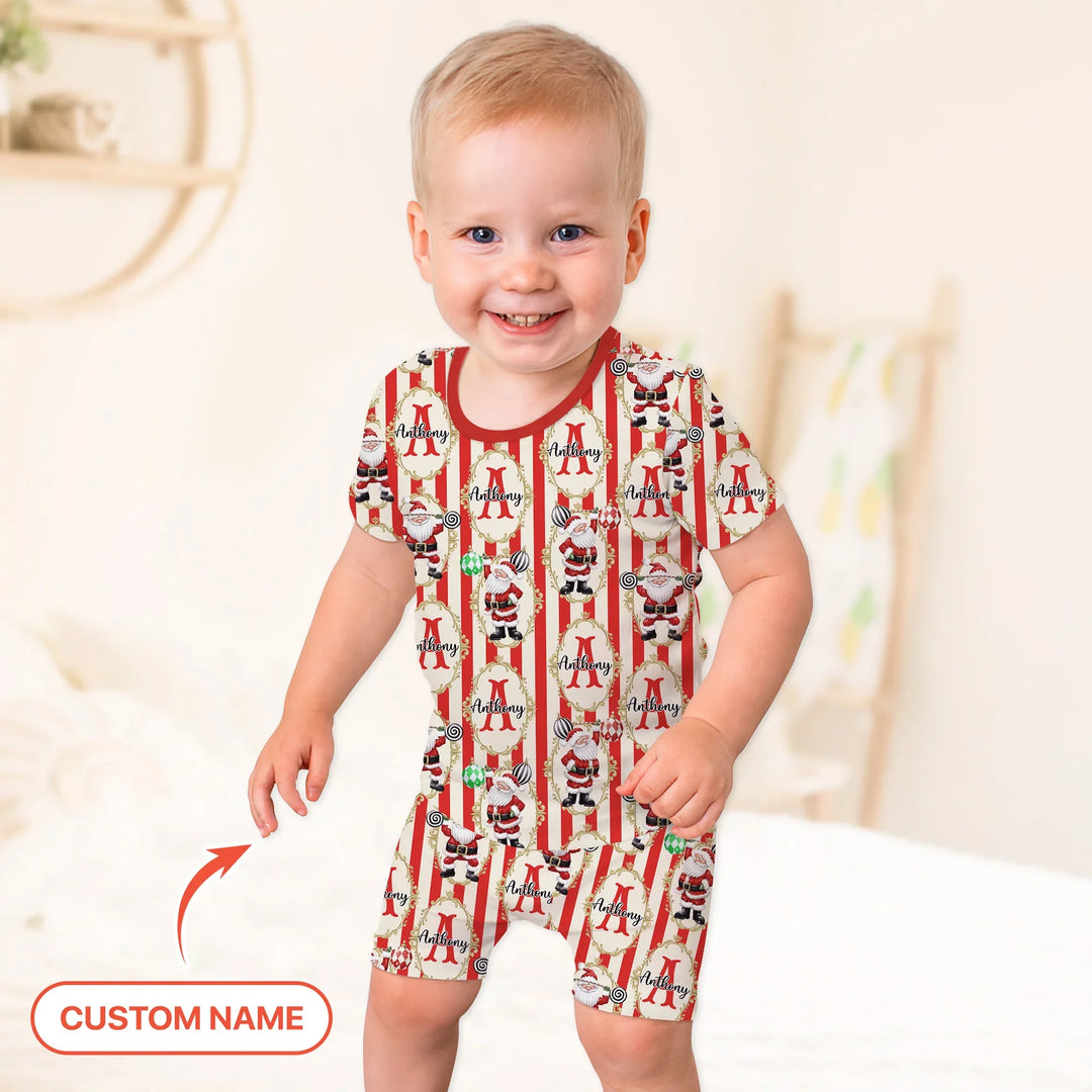 Ho-ho-holiday dreams start here! This festive red-and-cream stripe print features jolly Santas, candy details, and your little one’s name for a magical personalized touch. Made from buttery-soft bamboo fabric, these zippies and PJs are cozy, breathable, and perfect for Christmas cuddles and morning photos! ❤️🎄