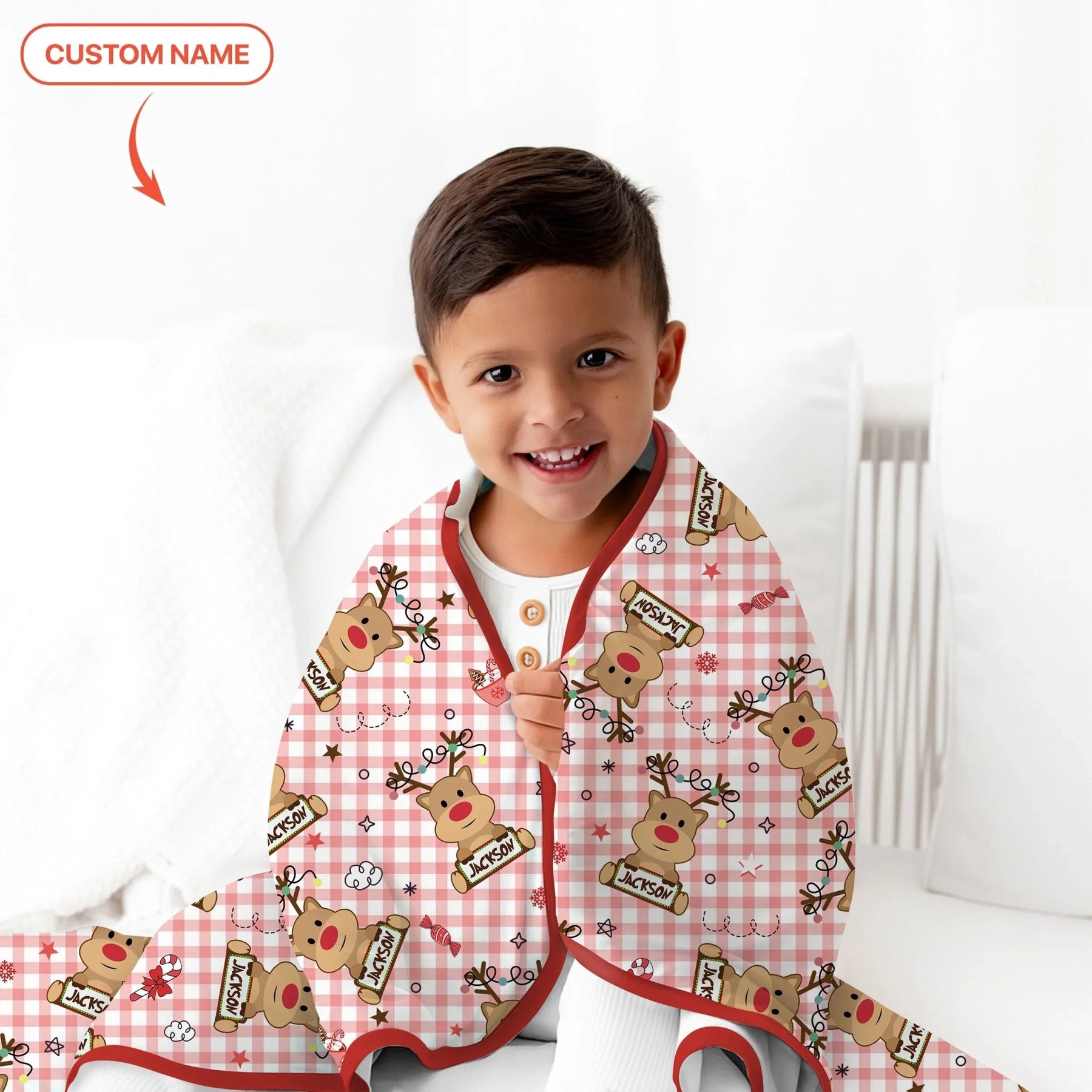 Hüllen Sie Ihren Kleinen in festliche Stimmung mit unserer Weihnachtsdecke mit individuellem Namen. Hergestellt aus luxuriös weichem Bambusgewebe, ist sie atmungsaktiv, kuschelig und sanft zu empfindlicher Haut. Fügen Sie den Namen Ihres Kindes hinzu – ein festliches Andenken, das das Weihnachtskuscheln noch magischer macht.