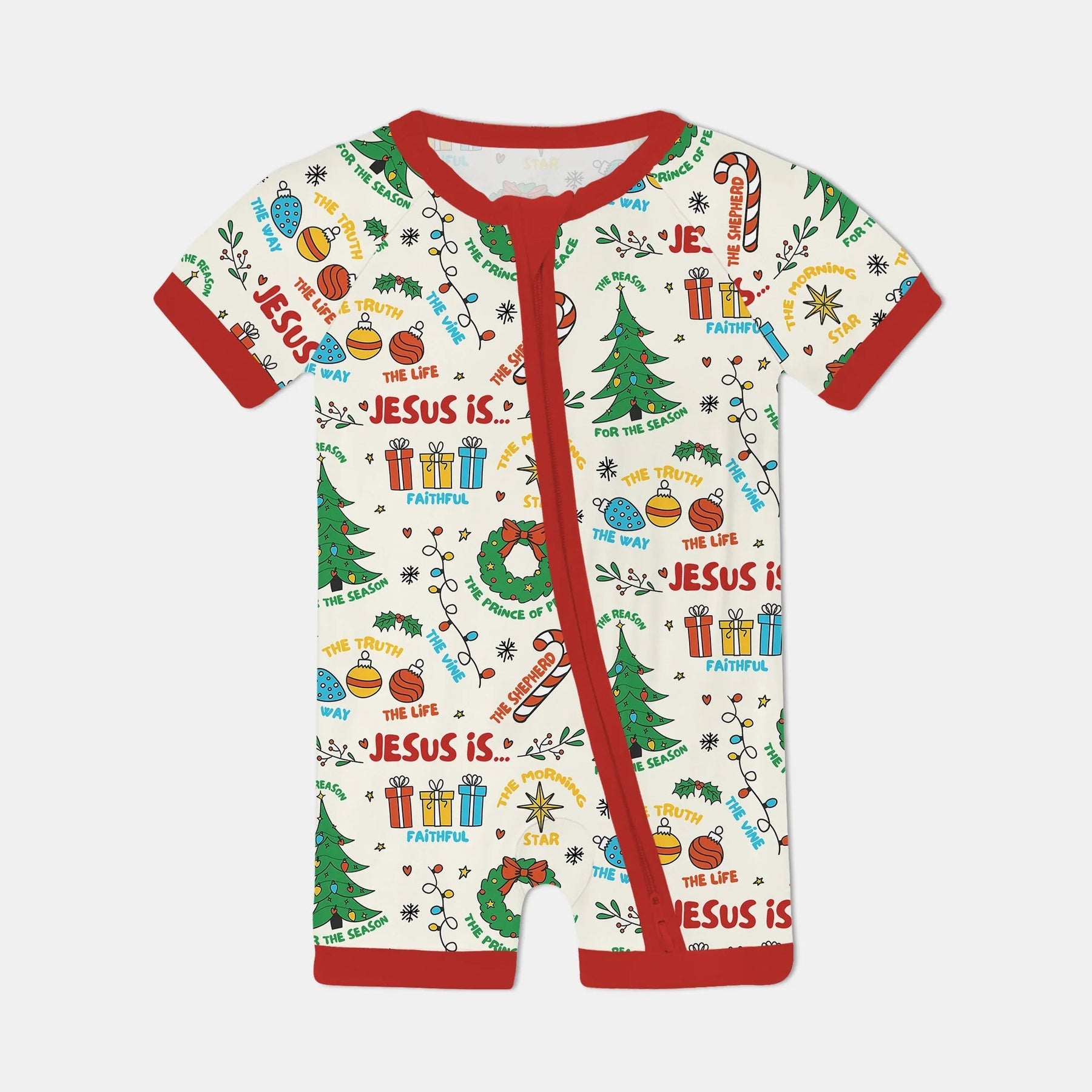 Feiern Sie die wahre Bedeutung von Weihnachten mit unserer „Jesus ist der Grund für die Weihnachtszeit“-Kollektion. Mit festlichen Bäumen, Zuckerstangen, Kränzen, Geschenken und fröhlichen, von der Heiligen Schrift inspirierten Worten wie „Der Weg“, „Die Wahrheit“, „Das Leben“ und „Treu“ stellt dieses Design Christus in den Mittelpunkt jedes Feiertagsmoments. Aus weichem, atmungsaktivem Stoff gefertigt, bietet dieser Pyjama Komfort, Wärme und eine schöne Erinnerung daran, warum wir Weihnachten feiern. Perfekt für gemütliche Abende, Familienfeiern und die Freude am Weihnachtsmorgen.
