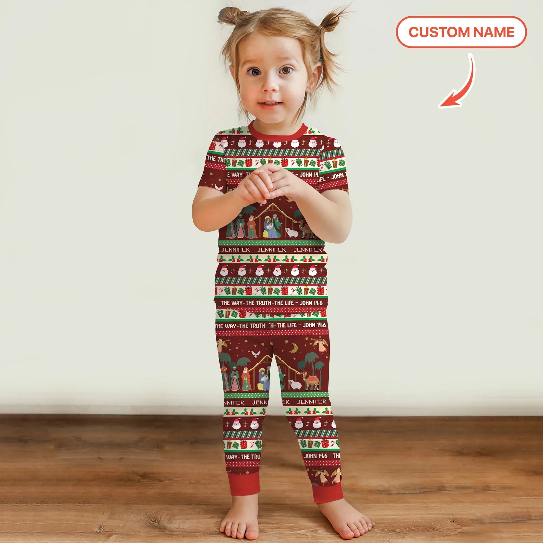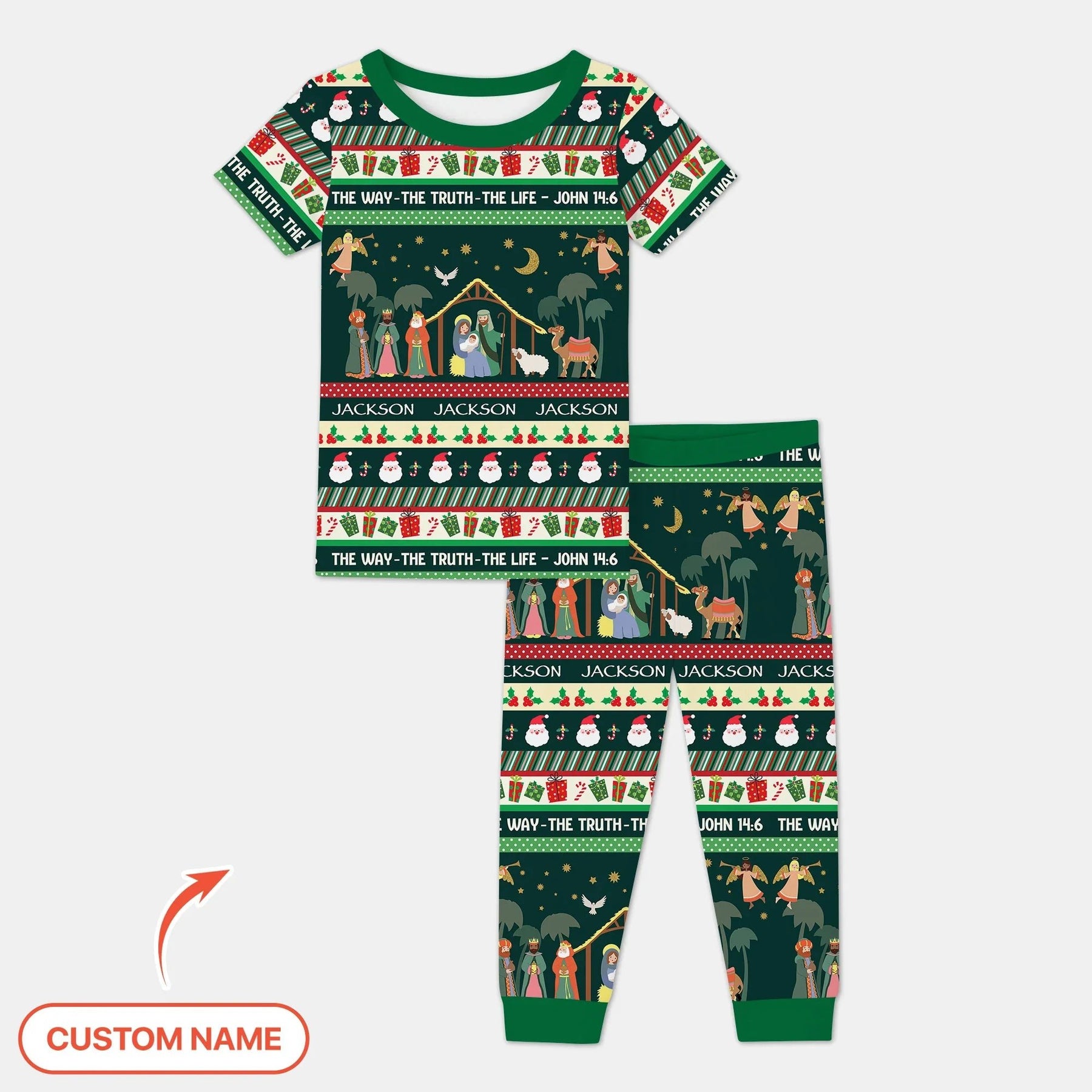 Jesus The Way The Truth The Life Custom Name Two Piece Short Sleeve Pajama Set - Zumbamboo