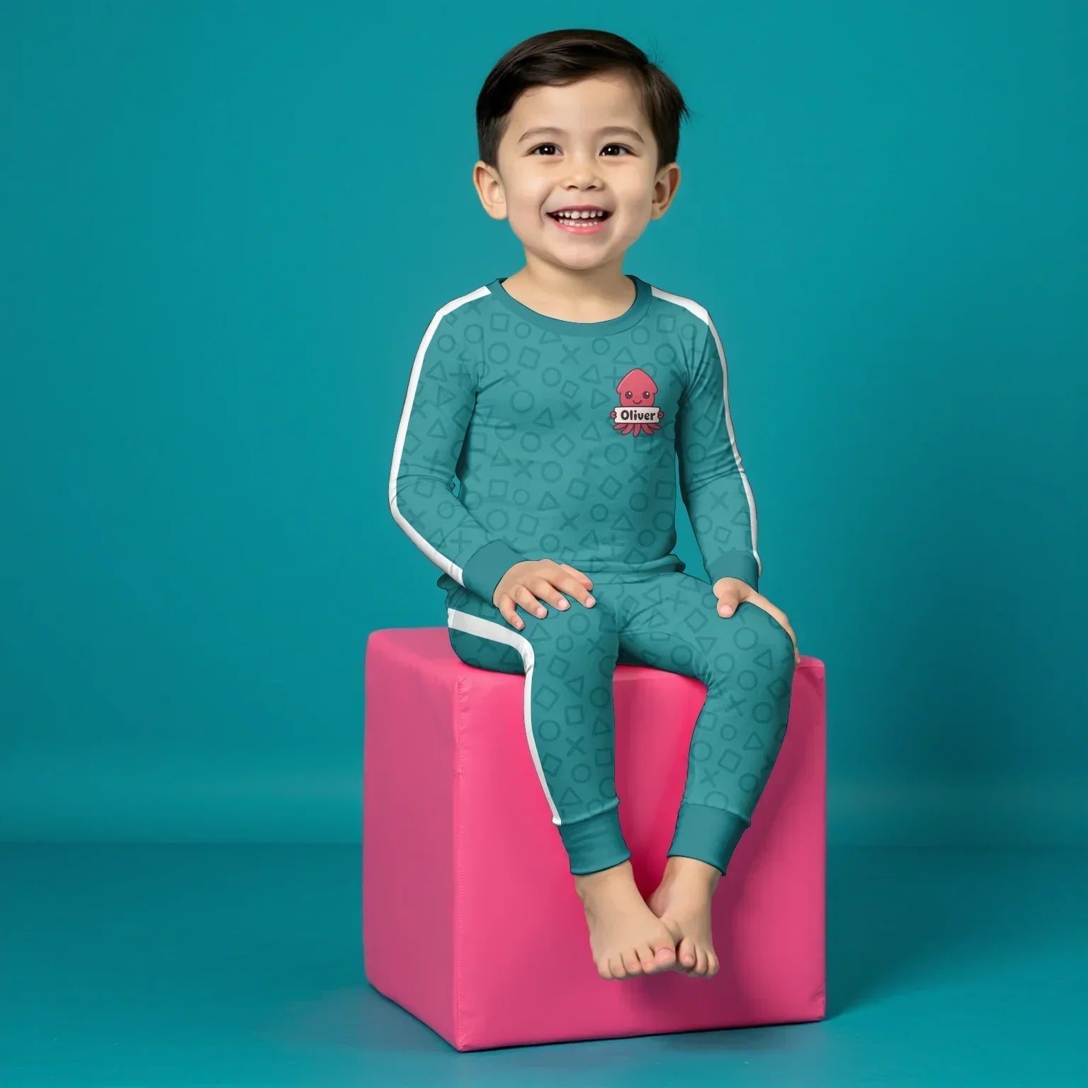 Little Squidze Squad Zweiteiliges Langarm-Pyjama-Set für Mädchen