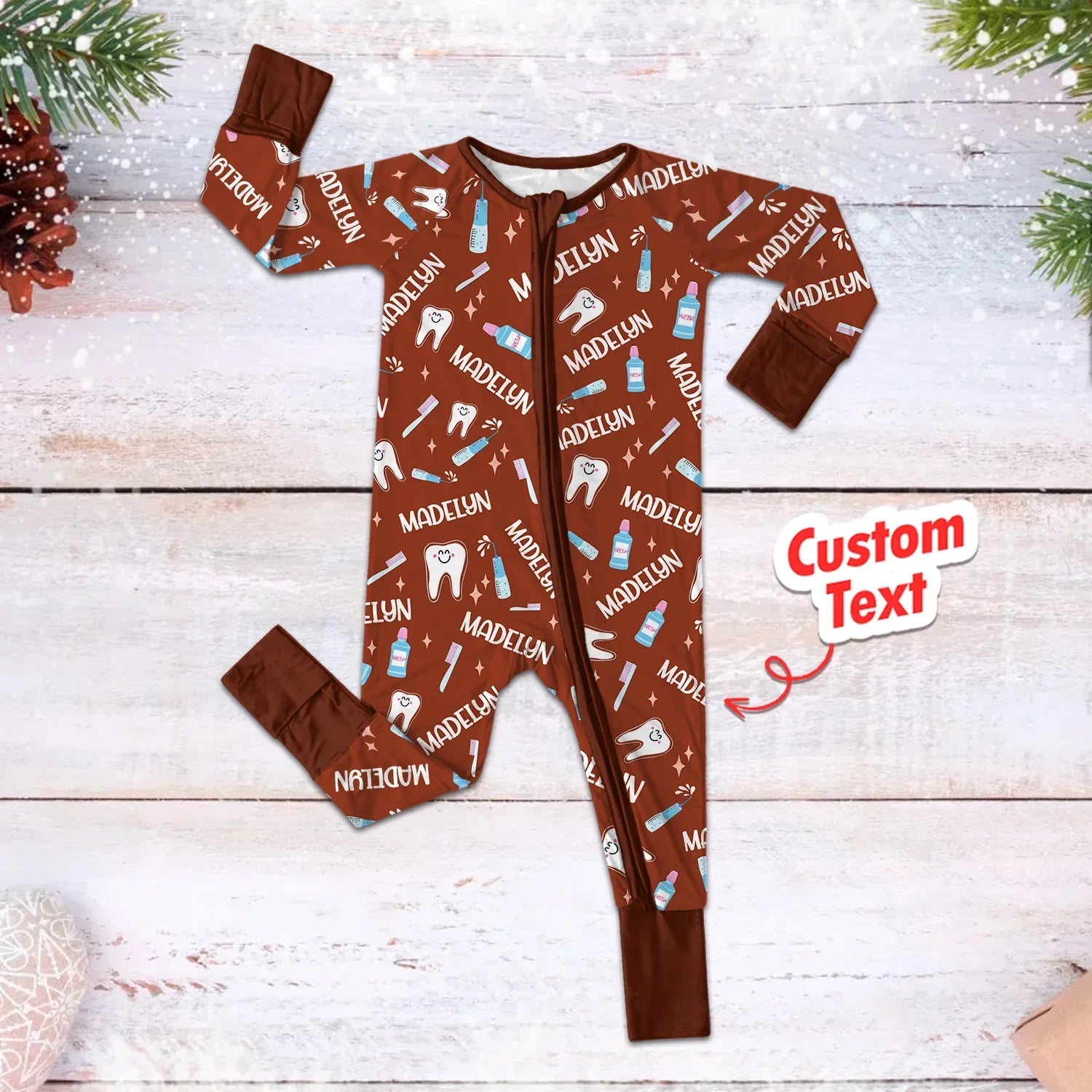Zähneputzen Benutzerdefinierter Name Wandelbarer Strampler mit Reißverschluss