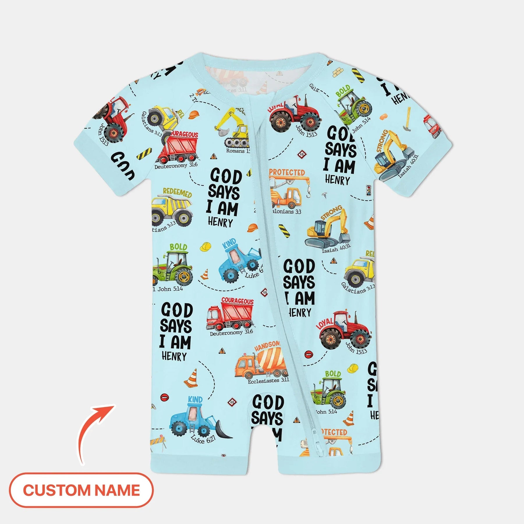 Bauen Sie Glauben und Spaß auf mit unserer „God Says I Am – Construction Vehicles Custom Name Collection“! Vollgepackt mit farbenfrohen Lastwagen, Baggern und Feuerwehrautos sowie ermutigenden Affirmationen erinnert dieses Design die Kleinen an ihre Stärke, ihren Mut und ihren Wert in Gottes Augen. Fügen Sie ihren Namen hinzu, um jedem Stück eine persönliche Note zu verleihen und es so einzigartig zu machen. Hergestellt aus ultraweichem, atmungsaktivem Bambusgewebe, ist diese Kollektion sanft zu zarter Haut – perfekt für verspielte Tage, gemütliche Nächte und jedes kuschelige Kuscheln zwischendurch.