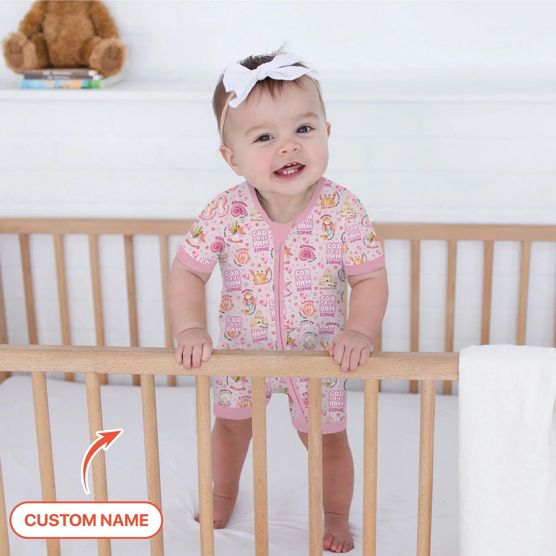 Bringen Sie Glauben und Spaß mit unserer „God Says I Am – Mermaid“-Kollektion! Mit Meerjungfrauen, Muscheln, Seesternen und Unterwasser-Affirmationen erinnert dieses skurrile Design die Kleinen an ihren wahren Wert in Gottes Augen. Fügen Sie ihren Namen hinzu, um jedem Stück eine persönliche Note zu verleihen und es zu einem einzigartigen Schatz zu machen. Hergestellt aus ultraweichem, atmungsaktivem Bambusgewebe, ist diese Kollektion sanft zur Haut – perfekt für Spielabenteuer, gemütliche Nächte und jedes kuschelige Kuscheln zwischendurch.