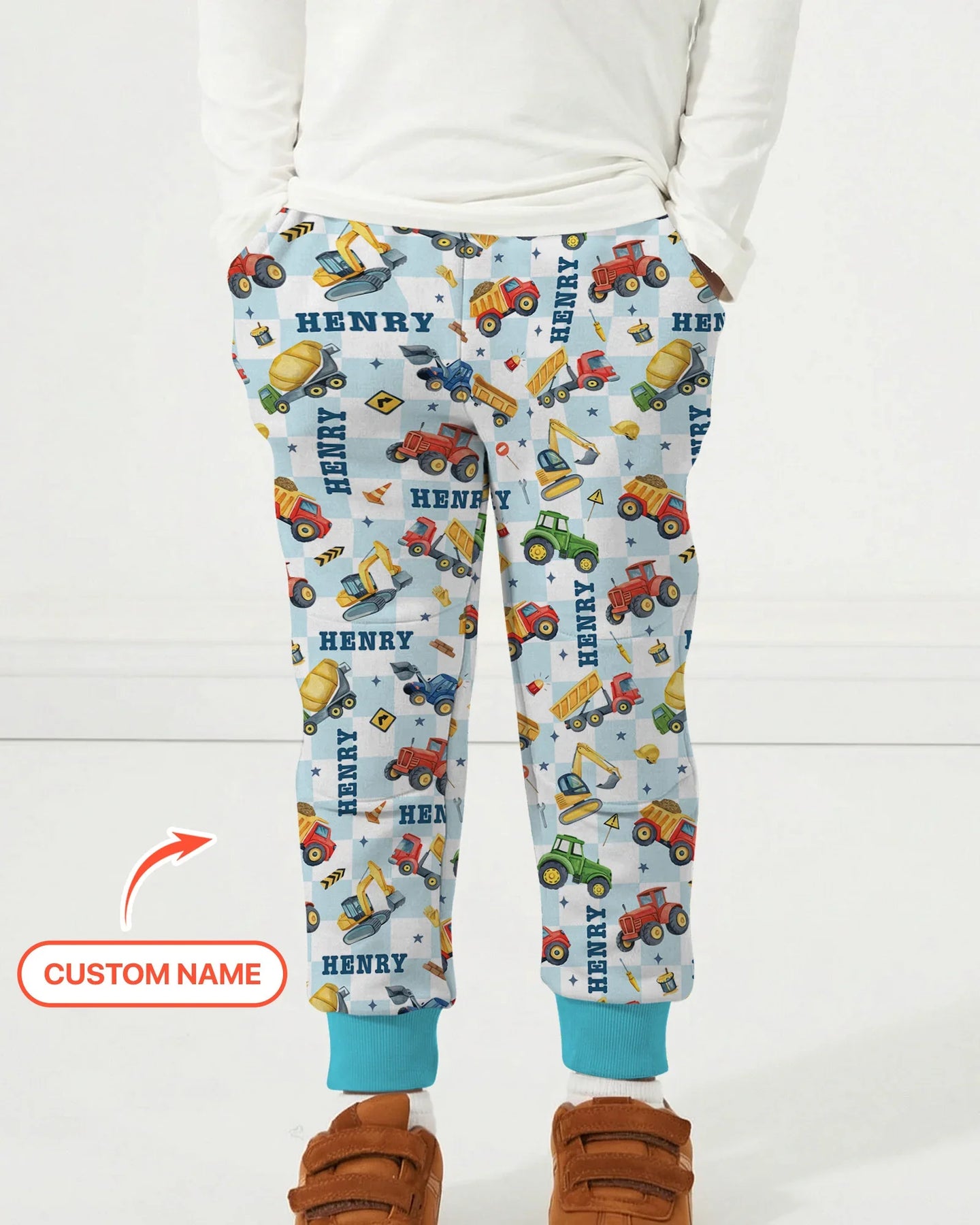 The Under Construction – Custom Name Collection is designed for little builders who never stop exploring, creating, and dreaming big. Featuring colorful construction vehicles like dump trucks, excavators, cement mixers, and tractors, this playful collection turns bedtime into an imaginative construction zone.