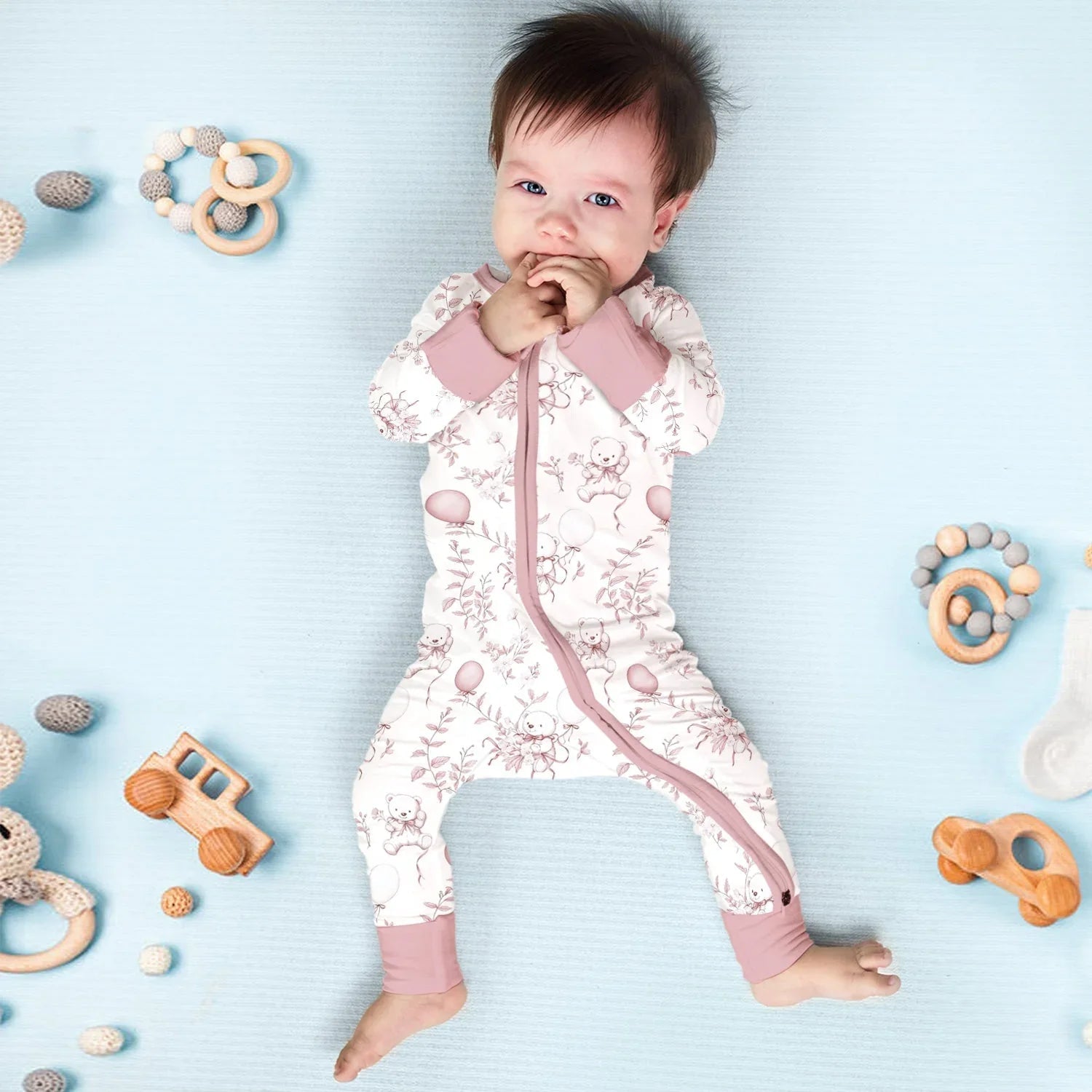 Pink Bear Toile de Jouy Cabrio-Strampler mit Reißverschluss