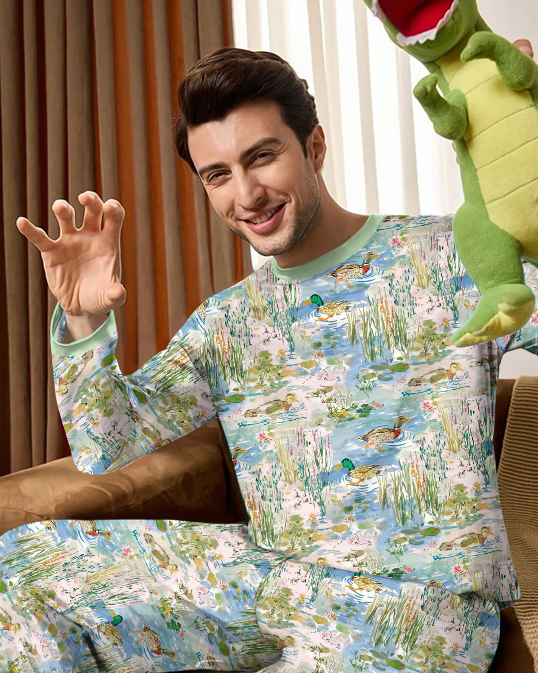 Zweiteiliges Langarm-Pyjama-Set mit Sommerfrüchten