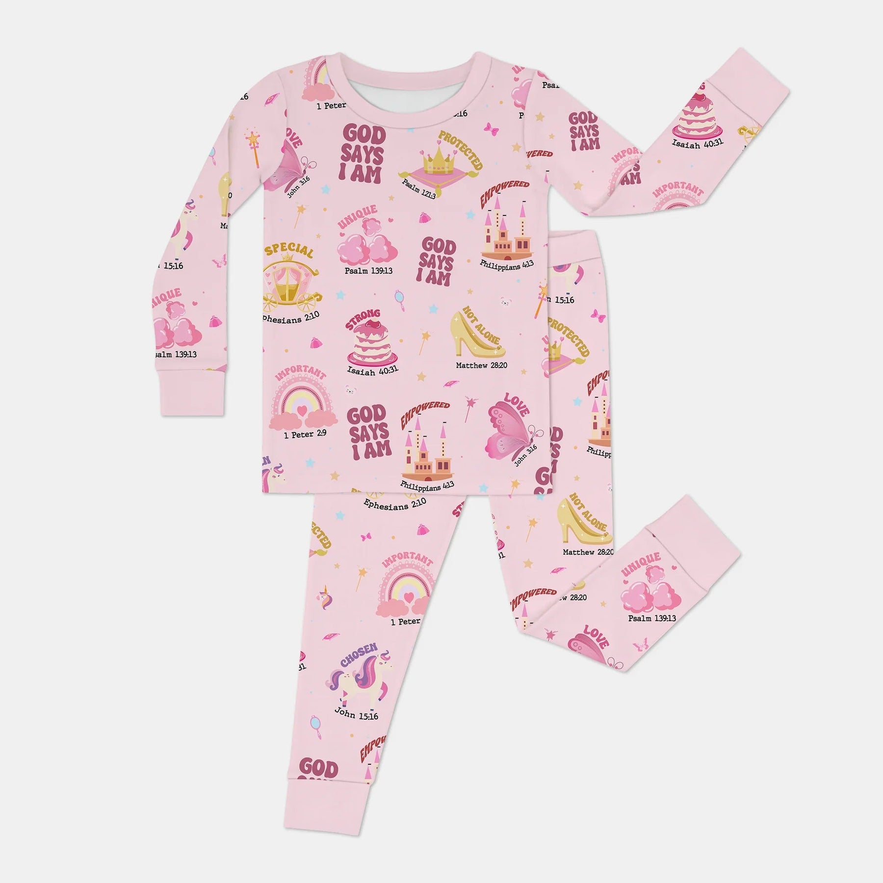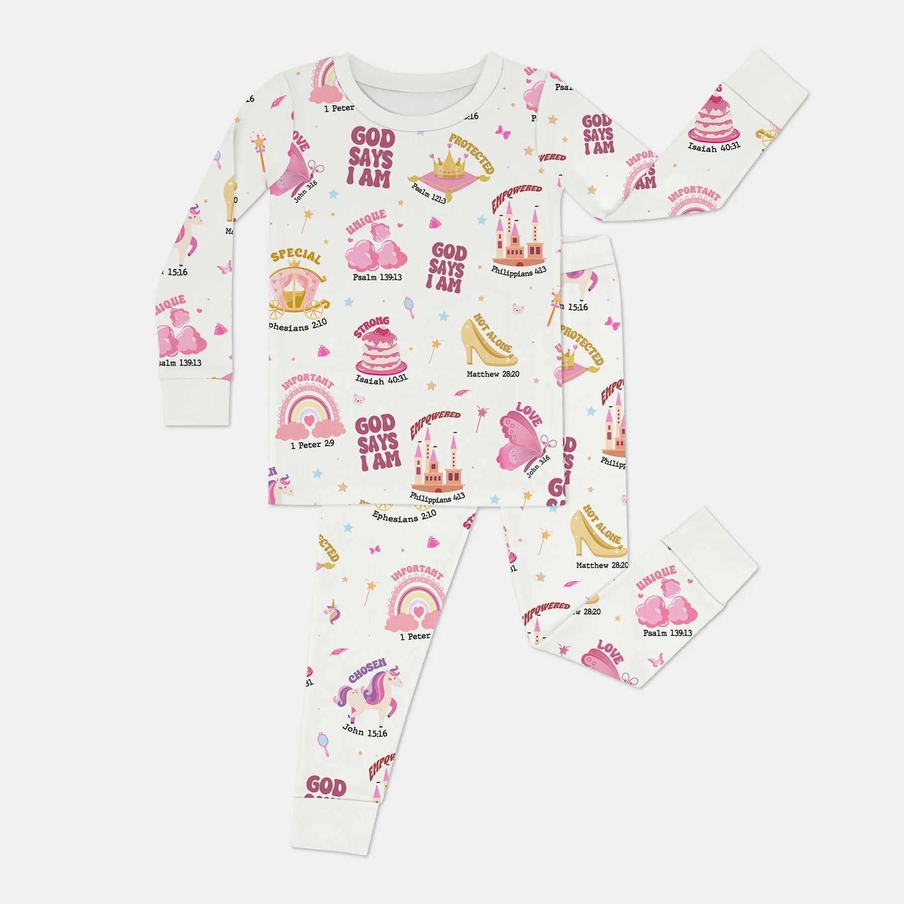 God Says I Am Girl Two Piece Long Sleeve Pajama Set - Zumbamboo