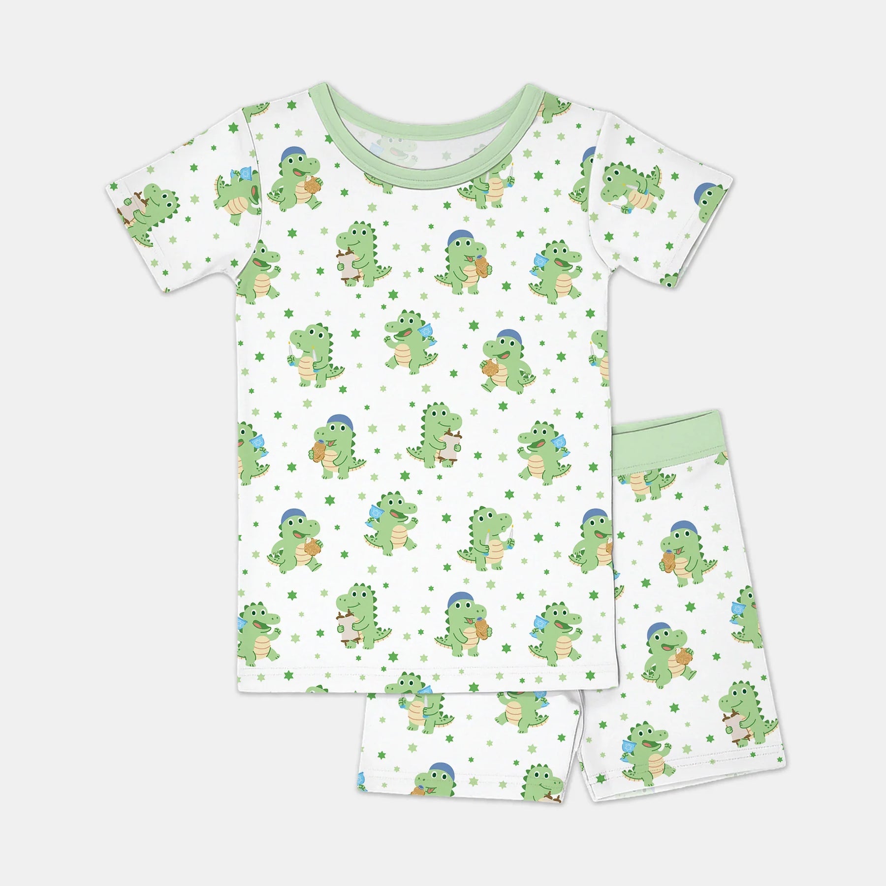 Roar into cuddle time with our Shabbat Dinosaur Collection! Featuring adorable green dinosaurs and playful stars, this ultra-soft bamboo set keeps your whole family cozy and smiling from bedtime to morning snuggles.