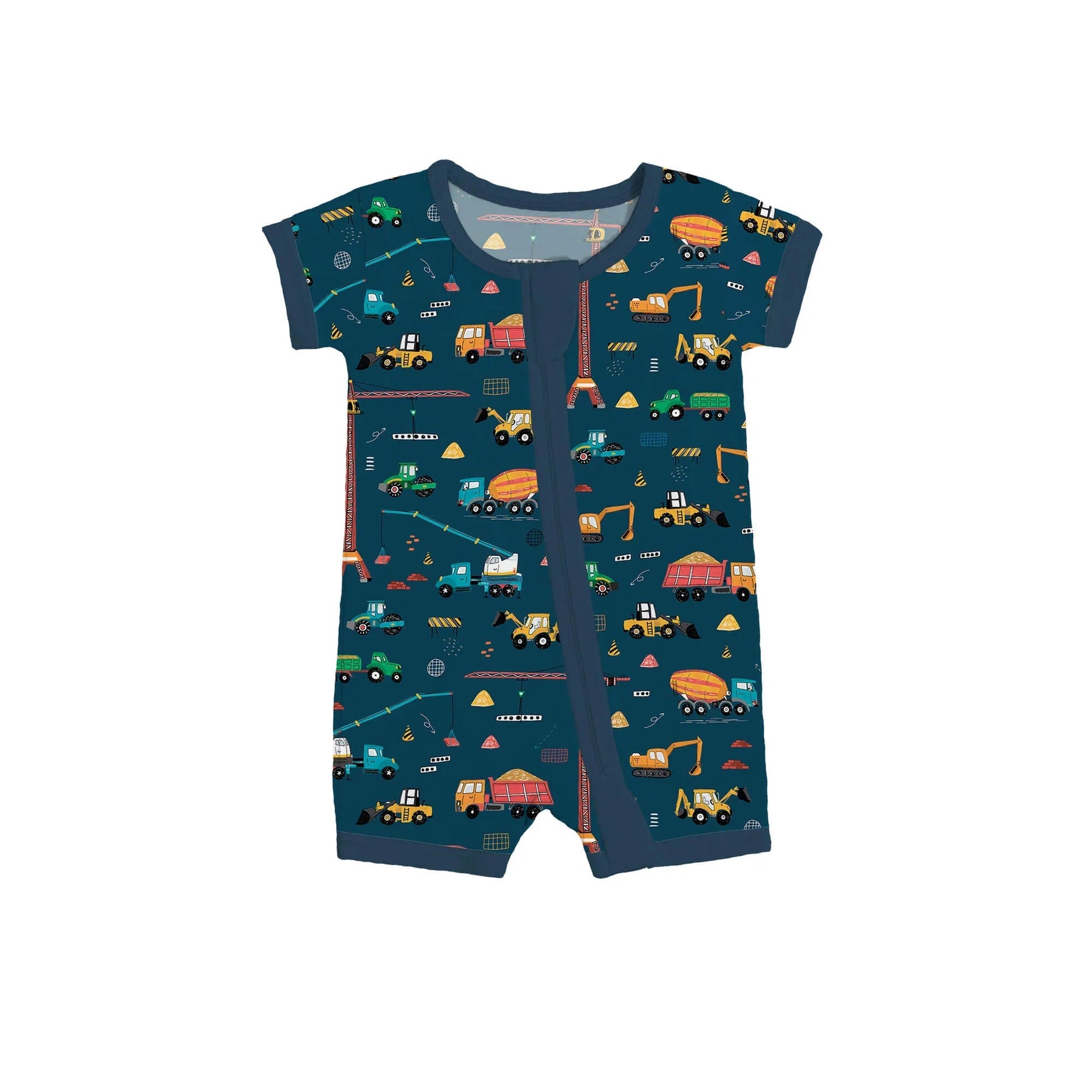 Dunkelschiefergrauer Construction Shorty-Strampler mit Reißverschluss