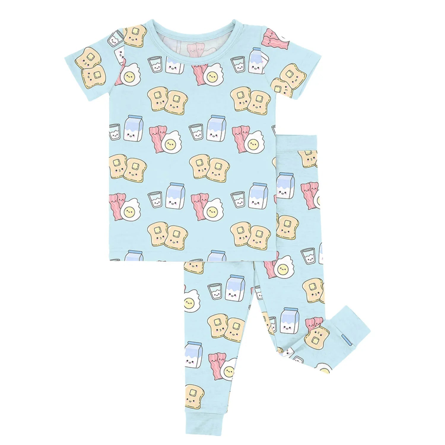 Beginnen Sie den Tag mit unserem zweiteiligen, kurzärmeligen Pyjama-Set „Breakfast Buddies“ (blau). Die entzückenden Frühstücksdrucke und der weiche Bambusviskosestoff sorgen für einen angenehmen Schlaf.