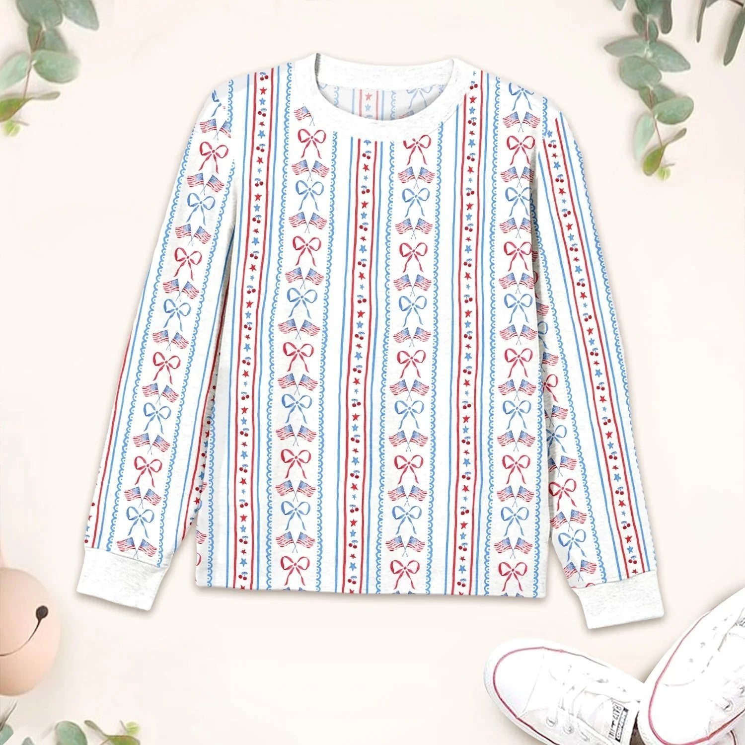 Zweiteiliges Langarm-Pyjama-Set mit Schleife und Flagge