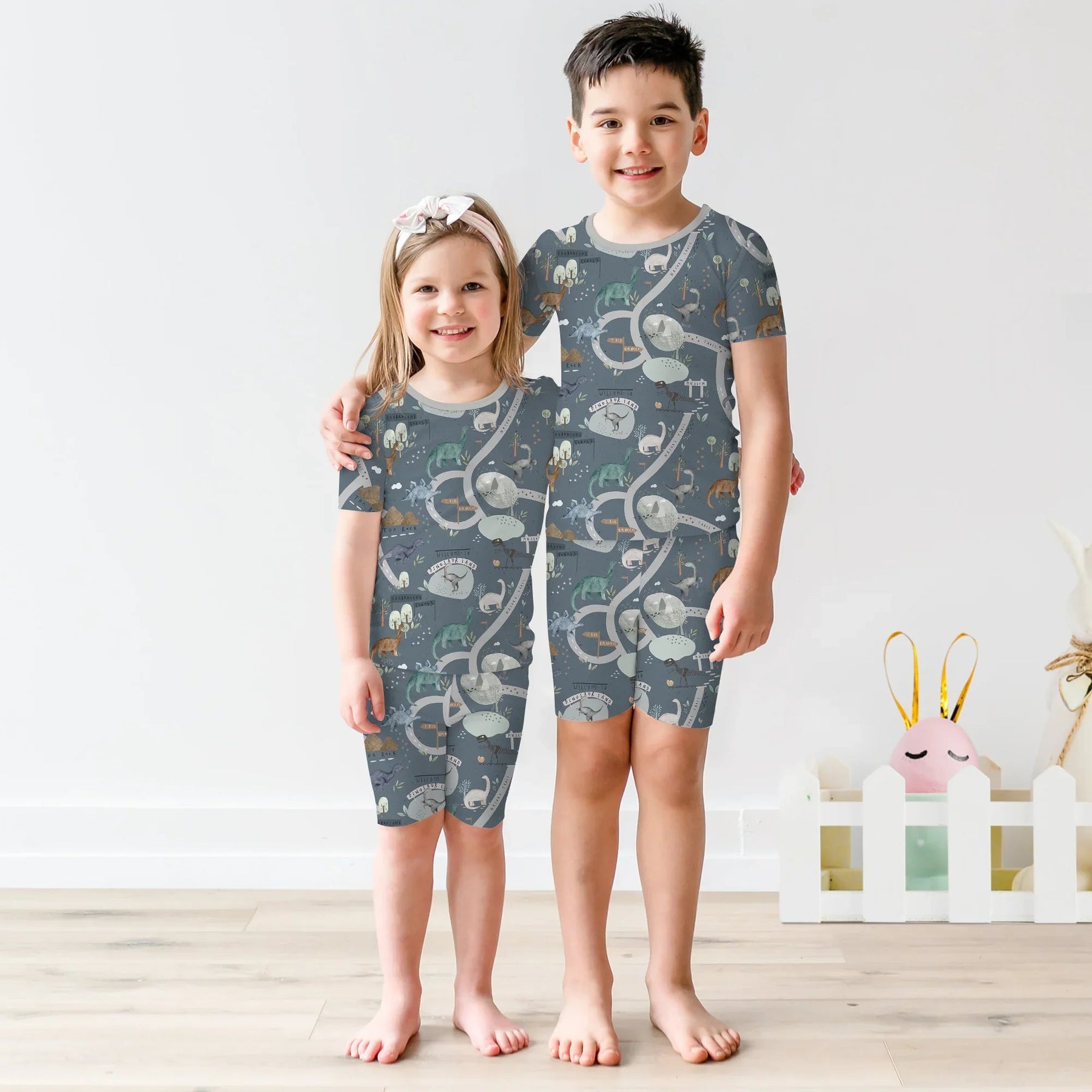 Dinosaur Route Map Two Piece Short Sleeve Shorts Pajama Set - Zumbamboo
