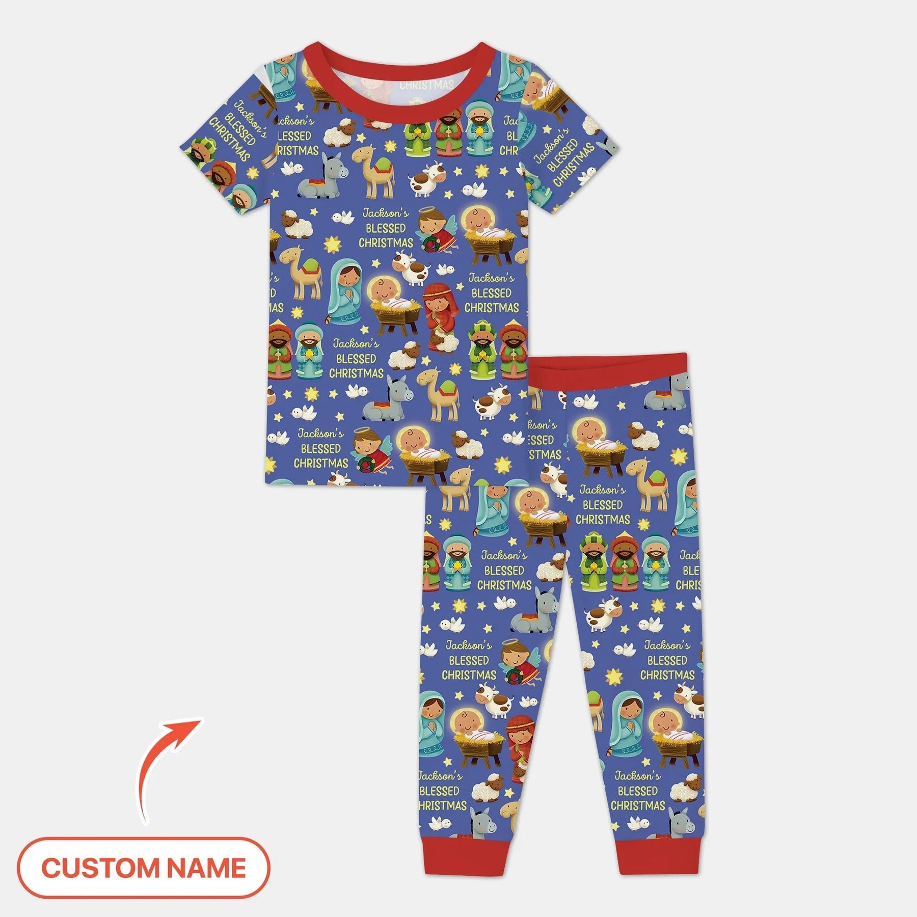 Custom Name Blessed Christmas Night Two Piece Short Sleeve Pajama Set - Zumbamboo