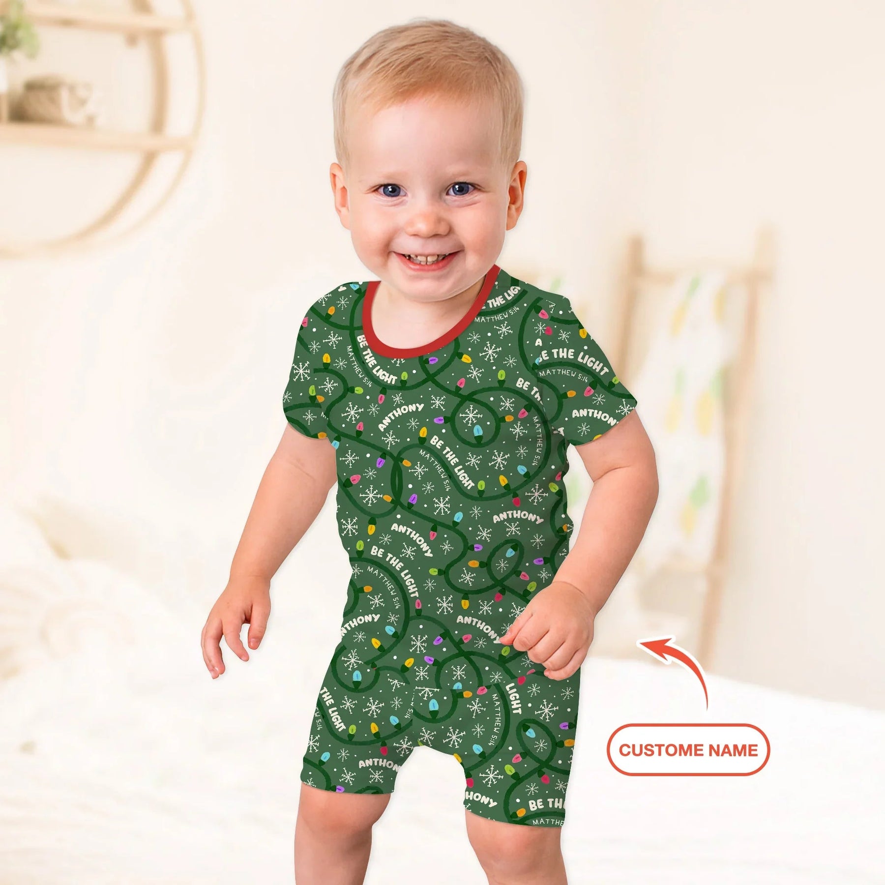 Custom Name Be The Light Christmas Two Piece Short Sleeve Shorts Pajama Set - Zumbamboo
