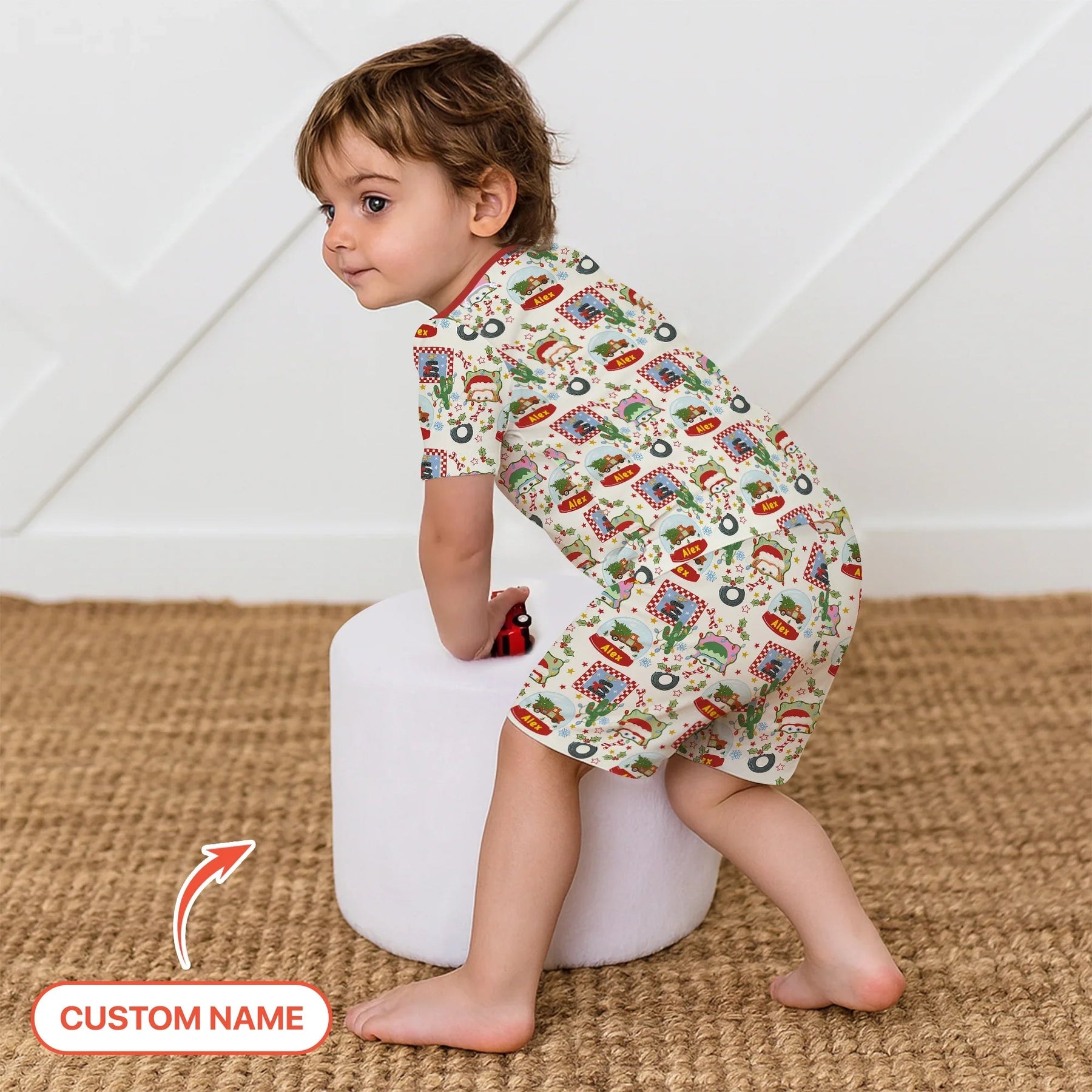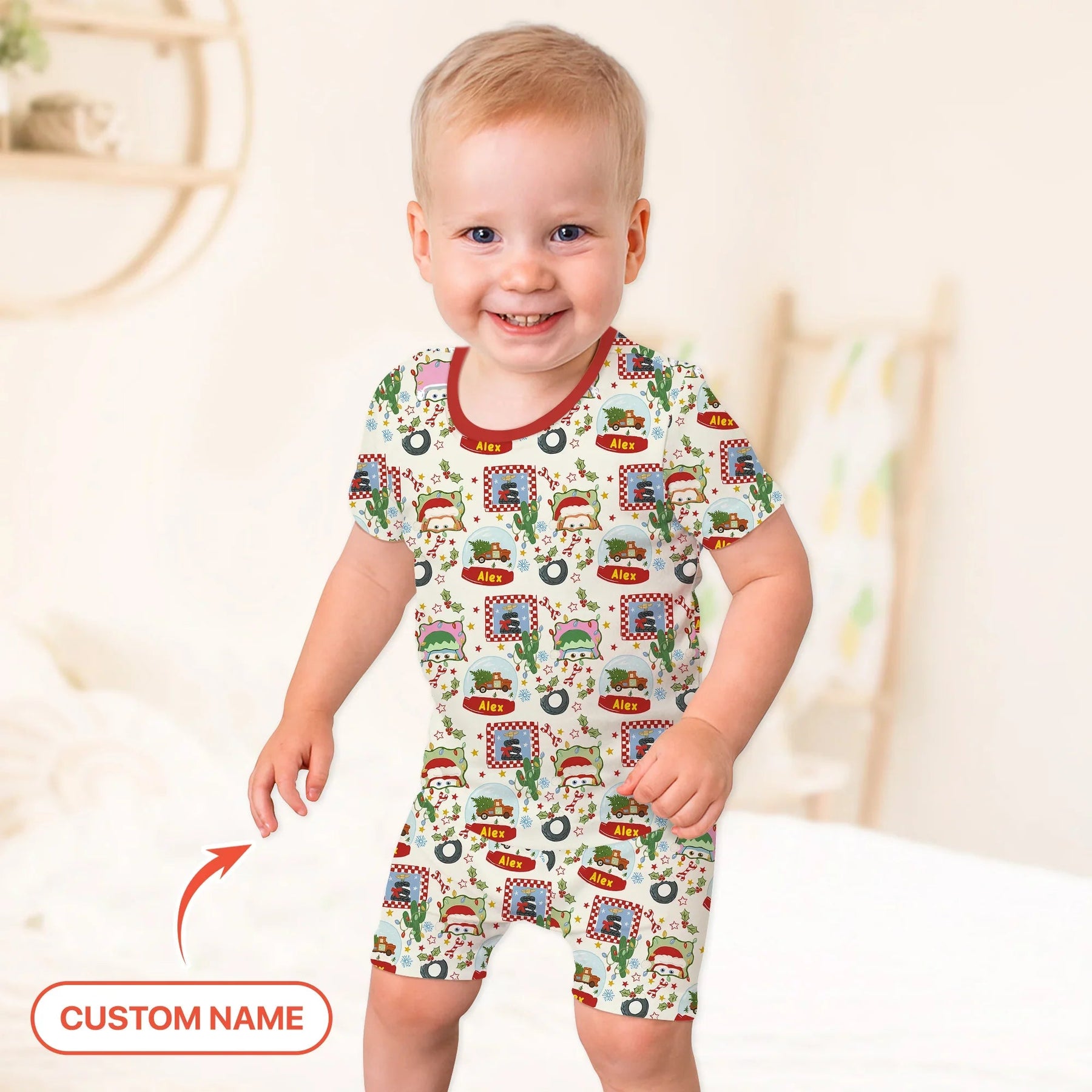 Custom Name Funny Christmas Cars Two Piece Short Sleeve Shorts Pajama Set - Zumbamboo