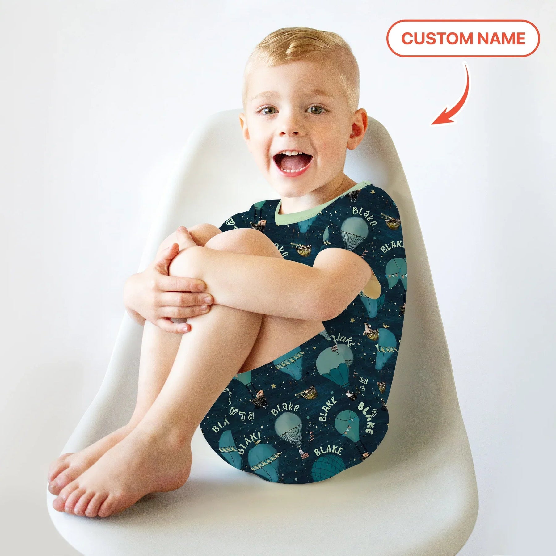 Custom Name Hot Air Balloon Green Two Piece Short Sleeve Shorts Pajama Set - Zumbamboo