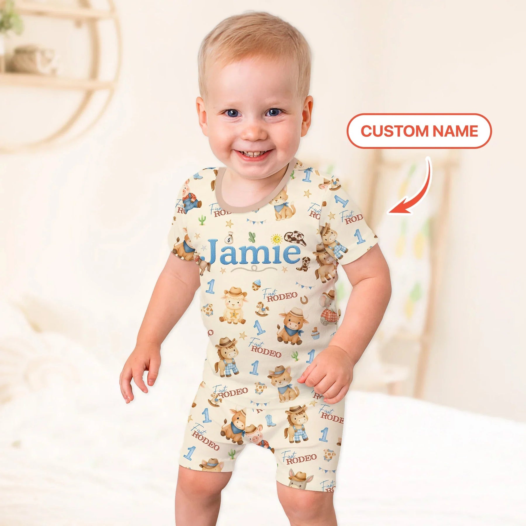 Custom Name My First Rodeo 1st birthday Two Piece Short Sleeve Shorts Pajama Set - Zumbamboo