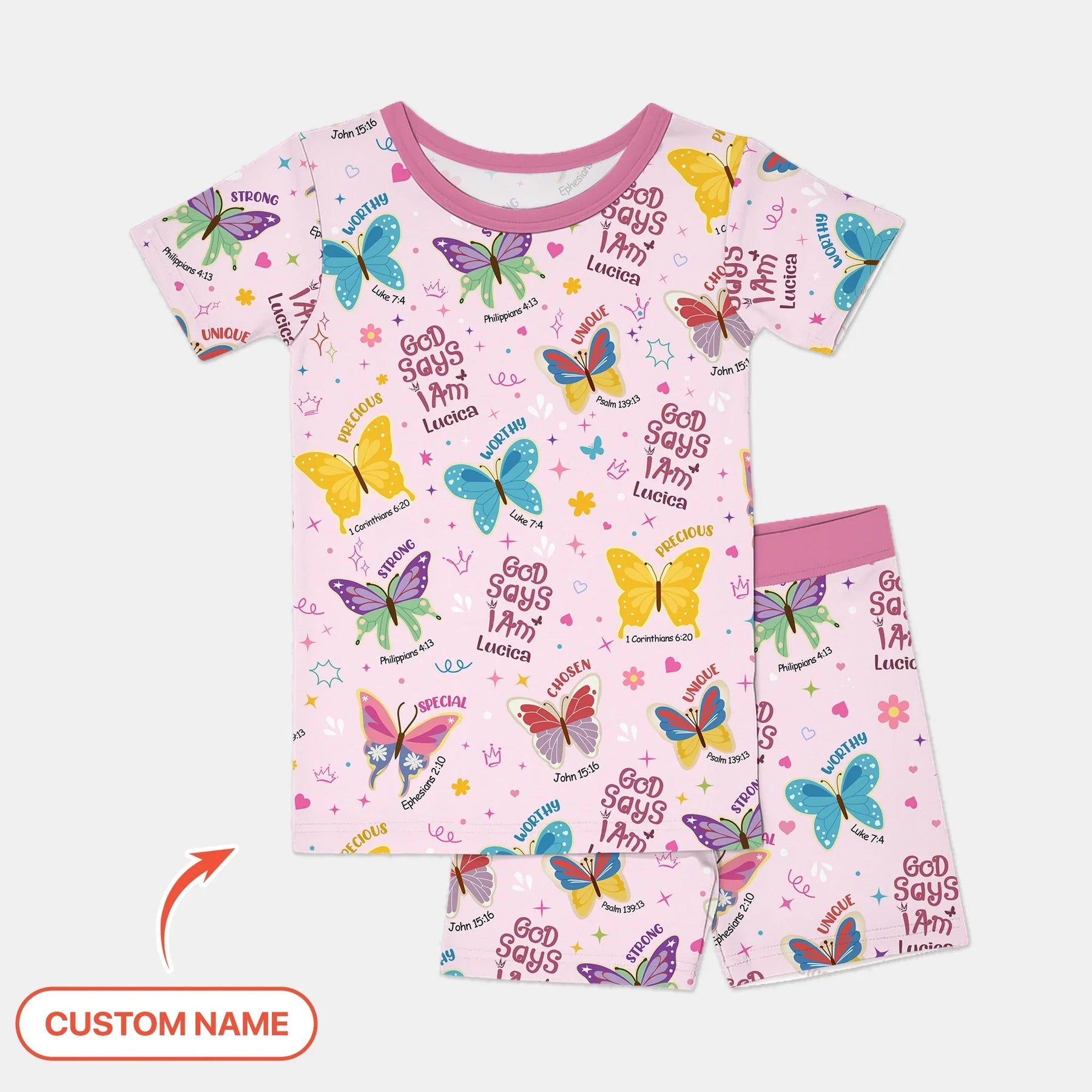God Says I Am Custom Name Girl Two Piece Short Sleeve Short Pajama Set - Zumbamboo