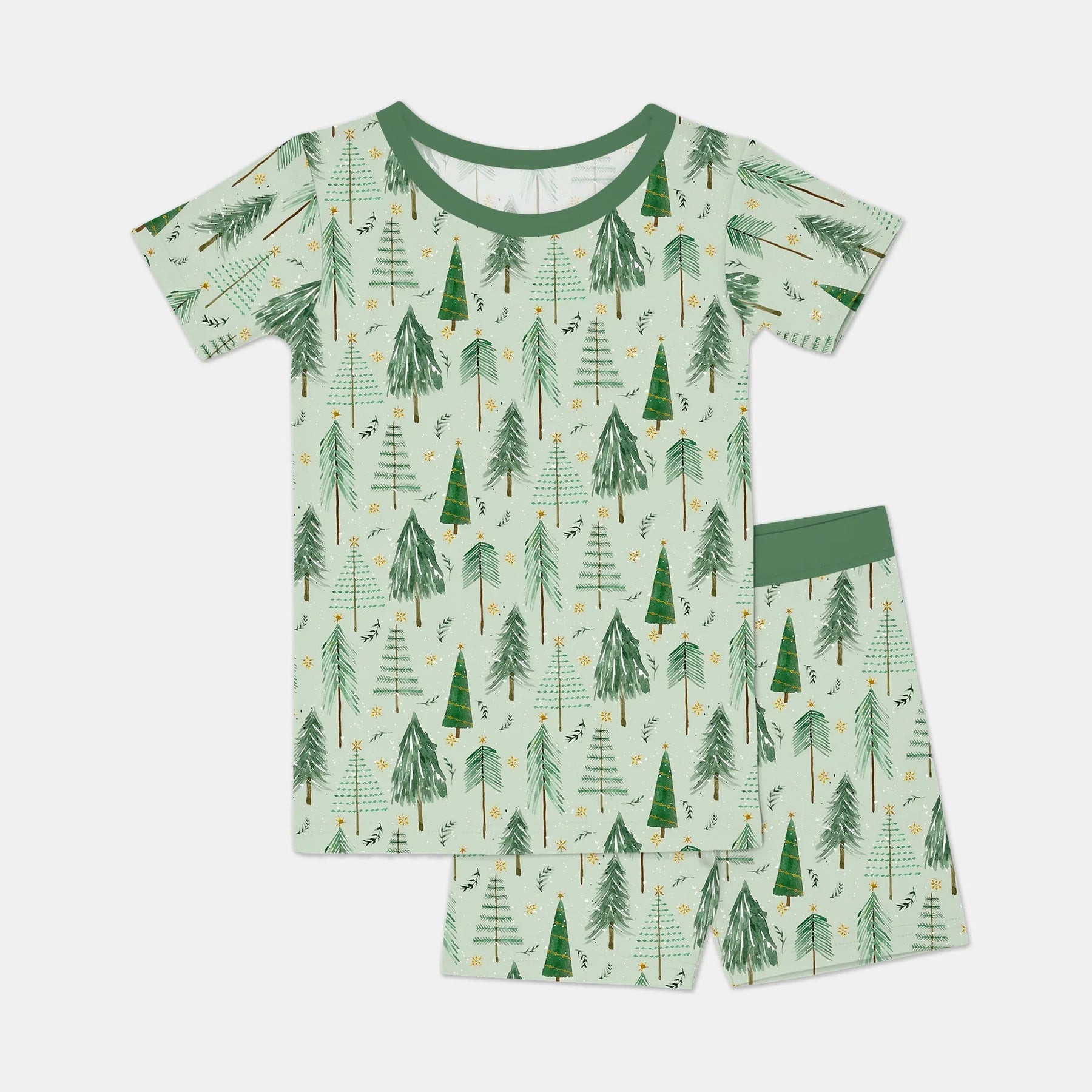 Green Christmas Tree Farm Two Piece Short Sleeve Shorts Pajama Set - Zumbamboo