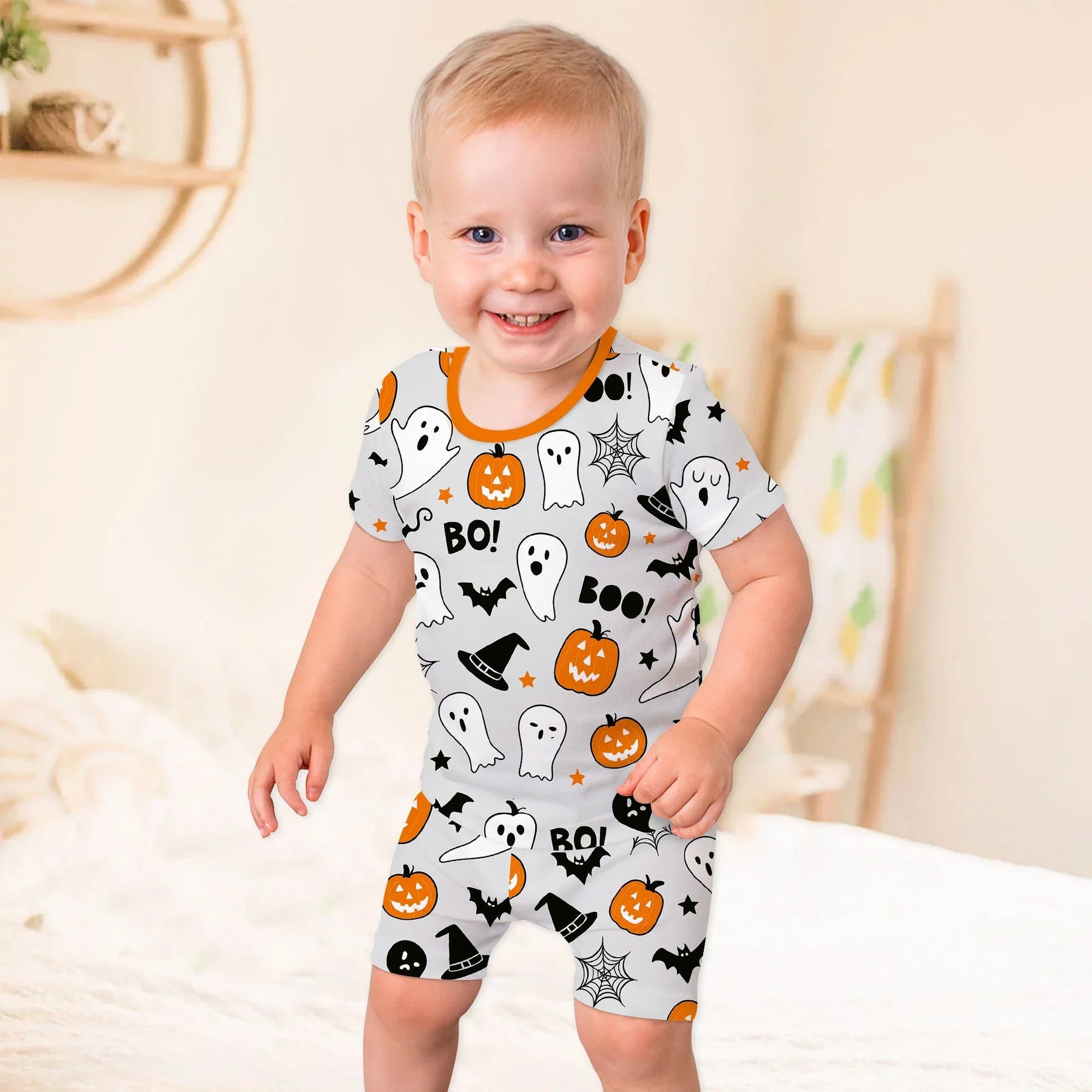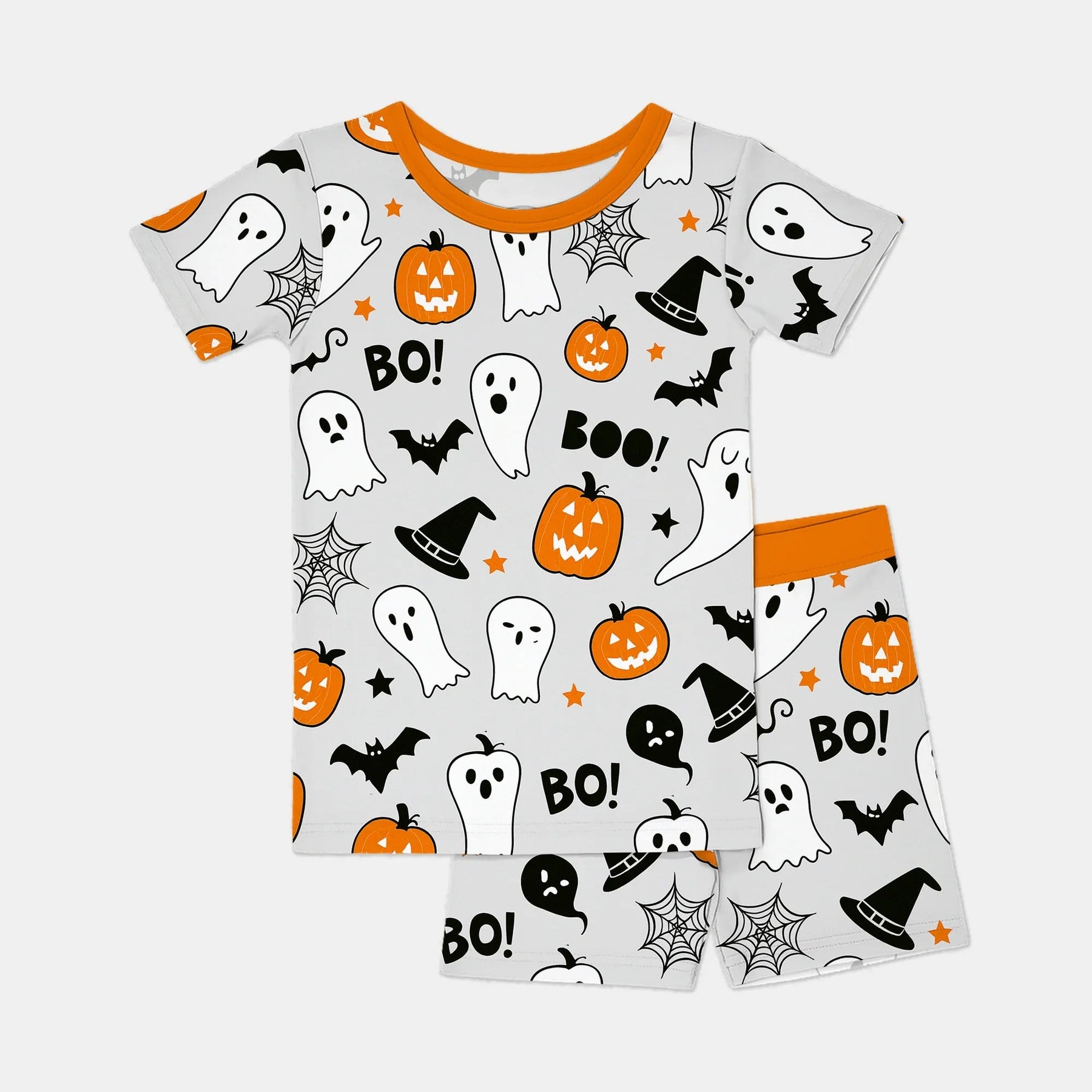 Halloween Boo & Pumpkin Glow In The Dark Zweiteiliges Pyjama-Set mit Kurzarm-Shorts