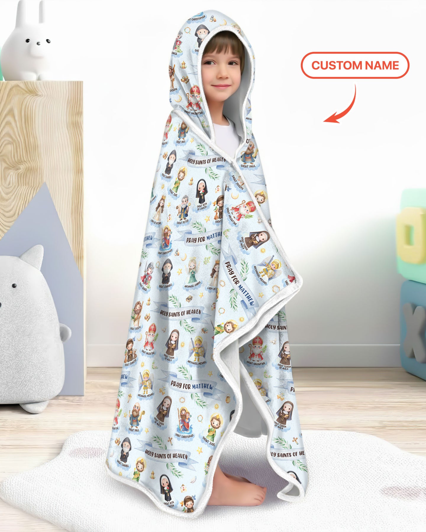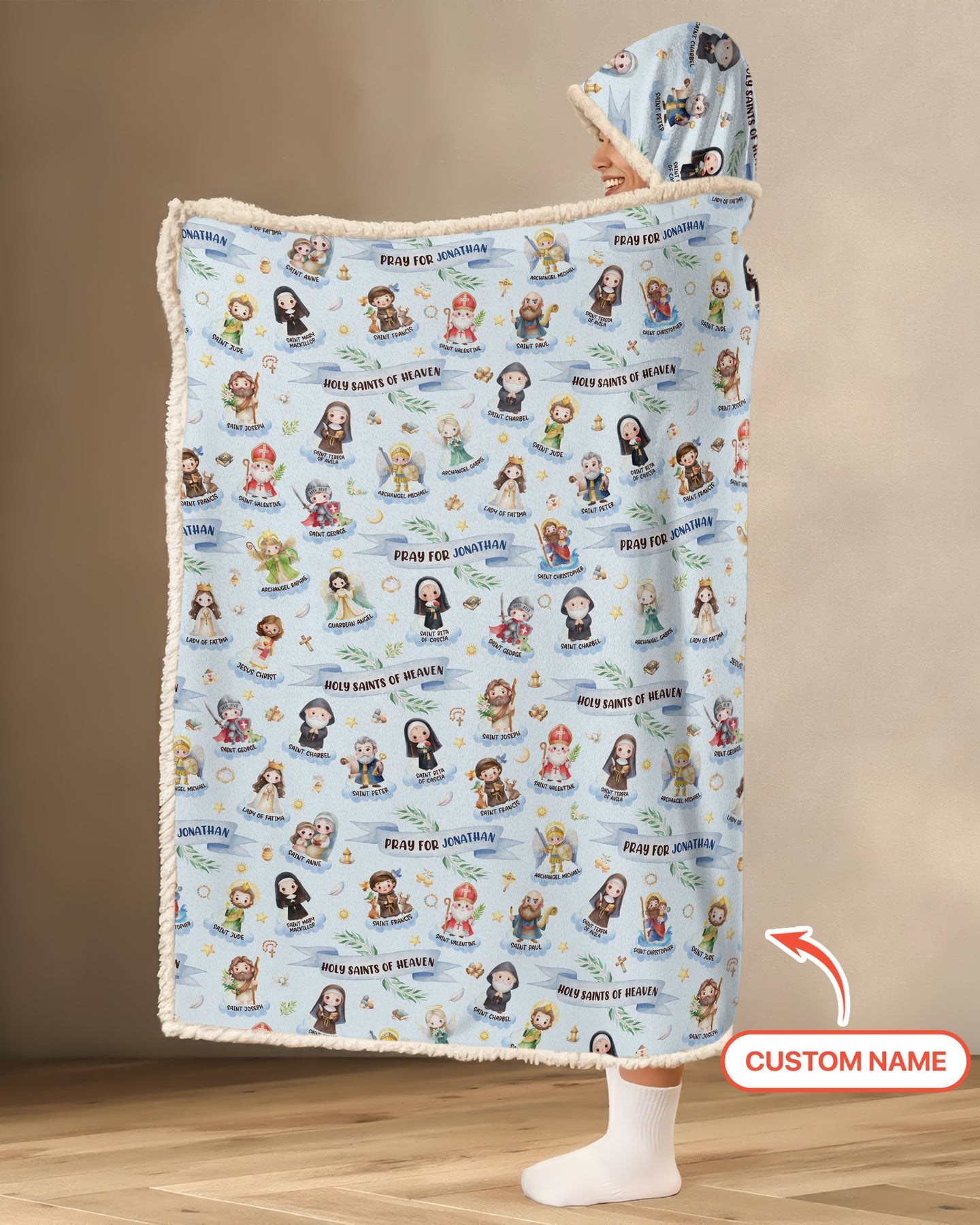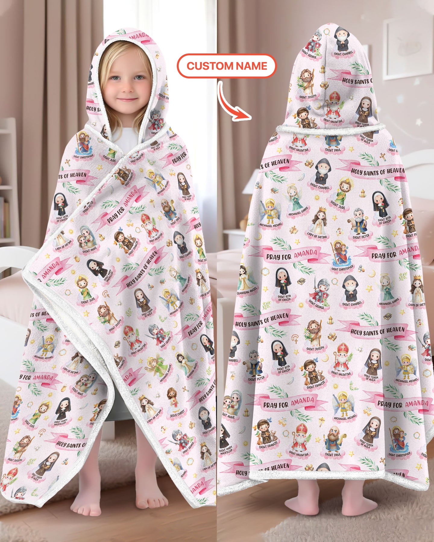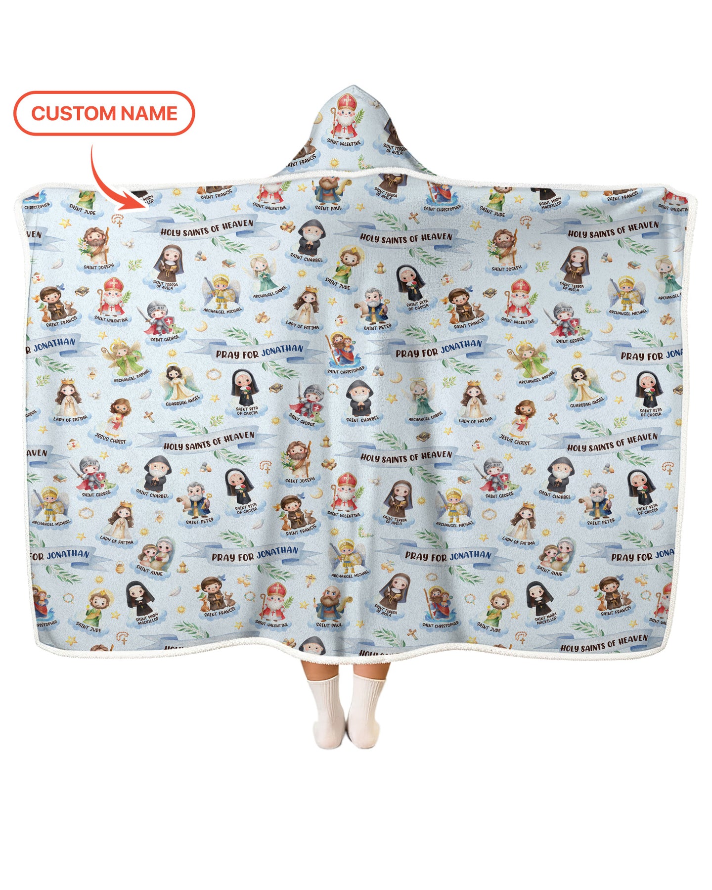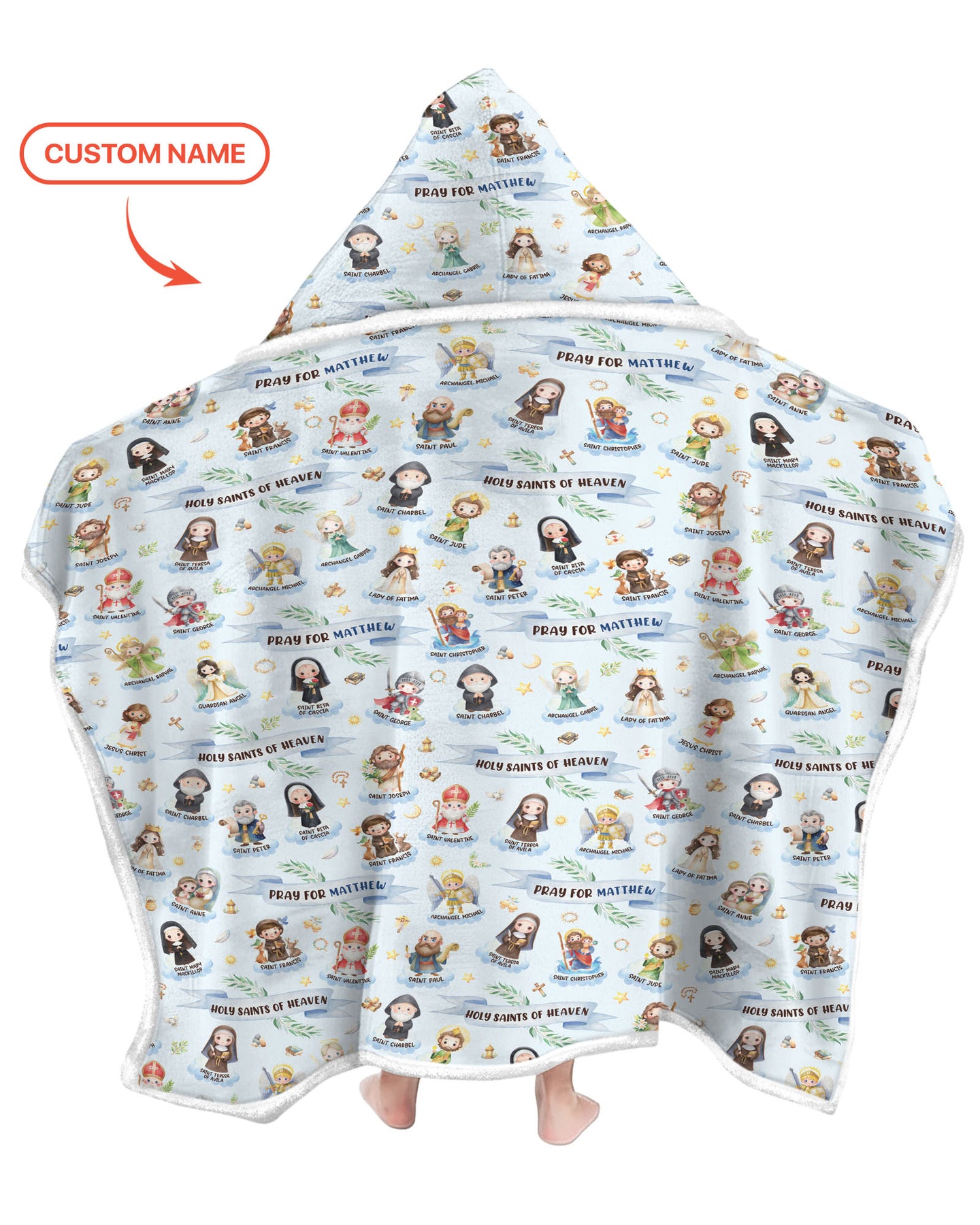 Bring faith, comfort, and personalization together with the Holy Saints of Heaven – Custom Name pajama set. Featuring beautifully illustrated saints and gentle faith-inspired messages, this design creates a warm and meaningful bedtime look for little ones. Each set can be personalized with your child’s name, making it a truly special keepsake.