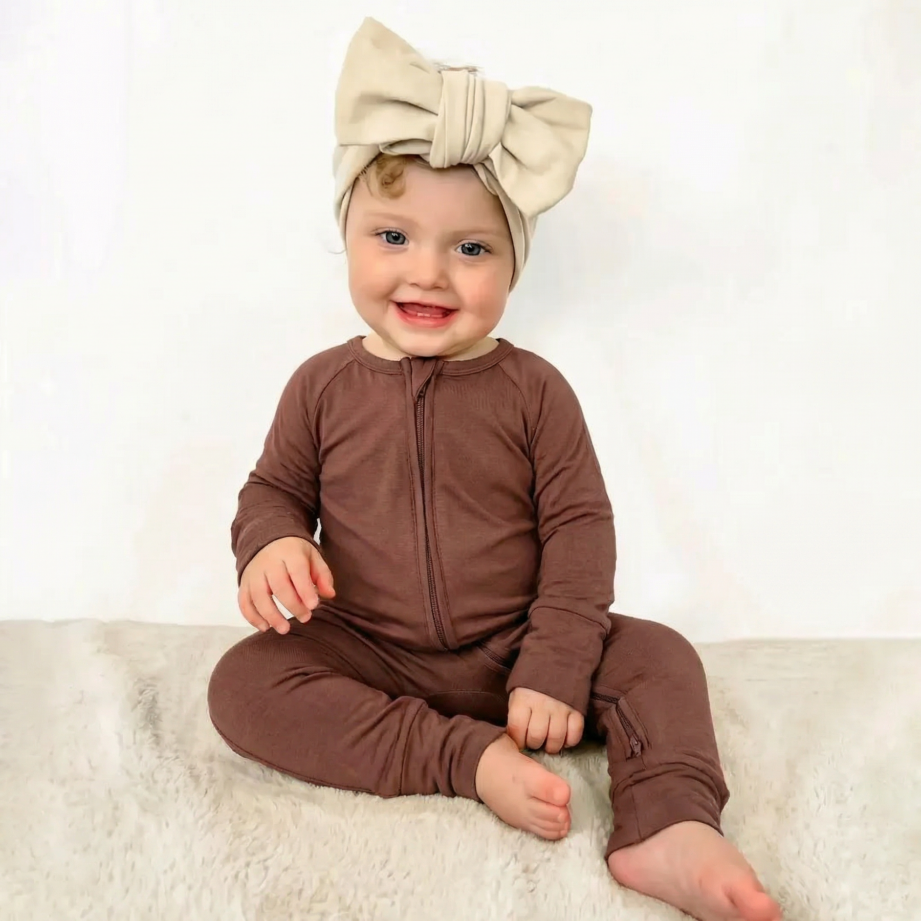 Machen Sie es sich mit unserem dunkelbraunen, wandelbaren Strampler gemütlich. Aus Bambusviskose gefertigt, ist er sanft zu empfindlicher Haut und perfekt für alle Jahreszeiten. Der Doppelreißverschluss erleichtert das Windelwechseln, während die umklappbaren Fäustlinge zusätzlichen Schutz und Wärme bieten.