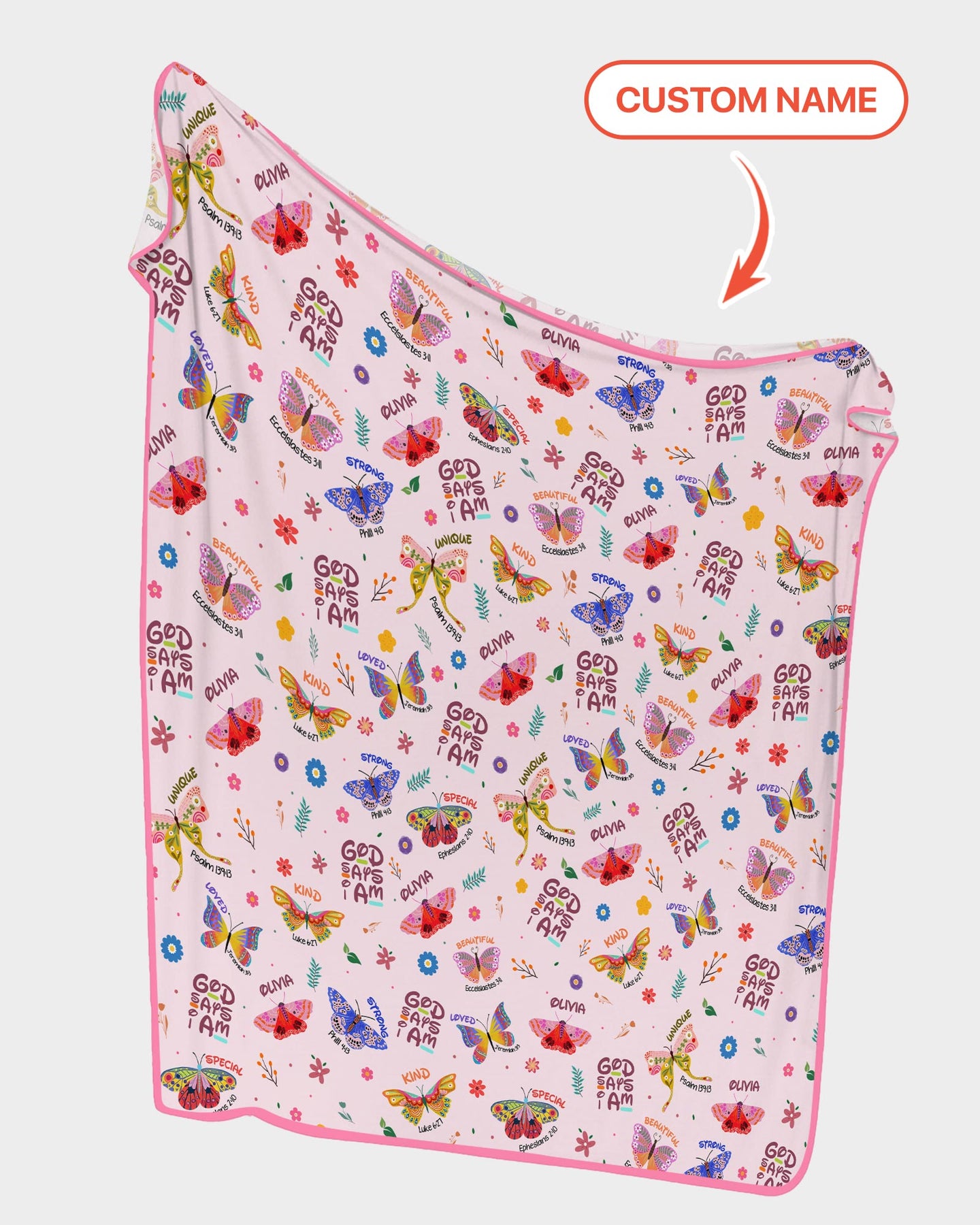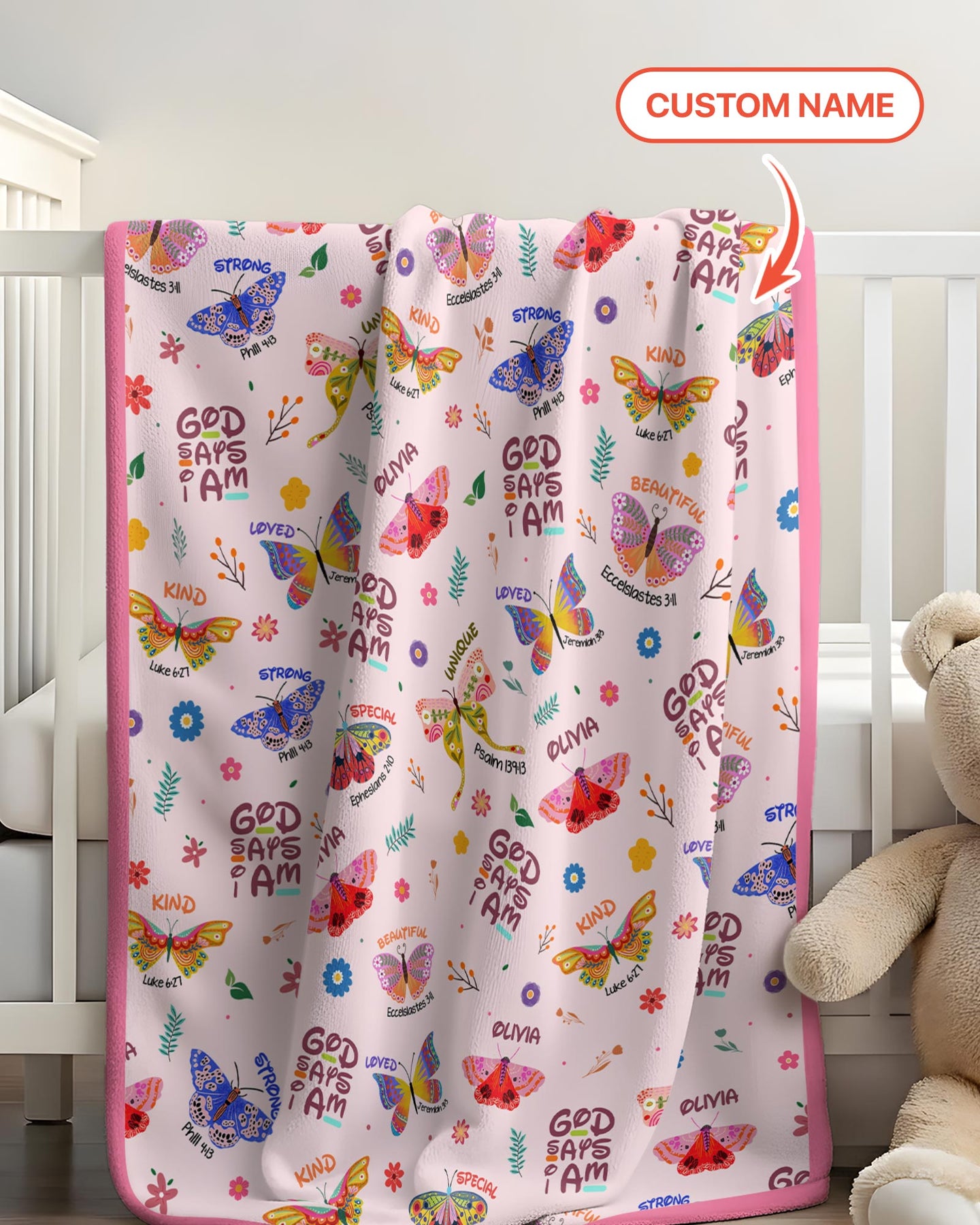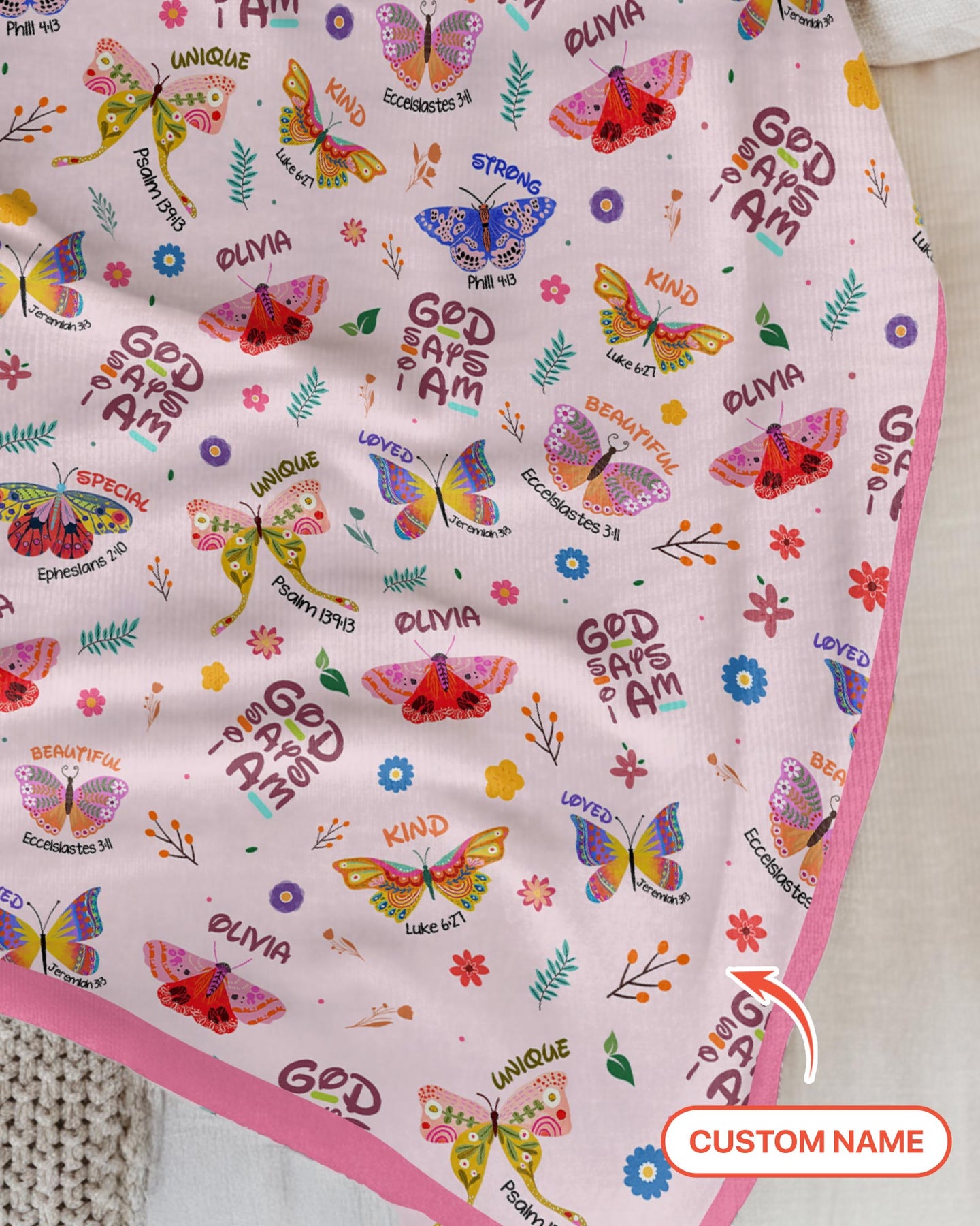 Benutzerdefinierter Name Gott sagt, ich bin Schmetterling Kleinkinddecke