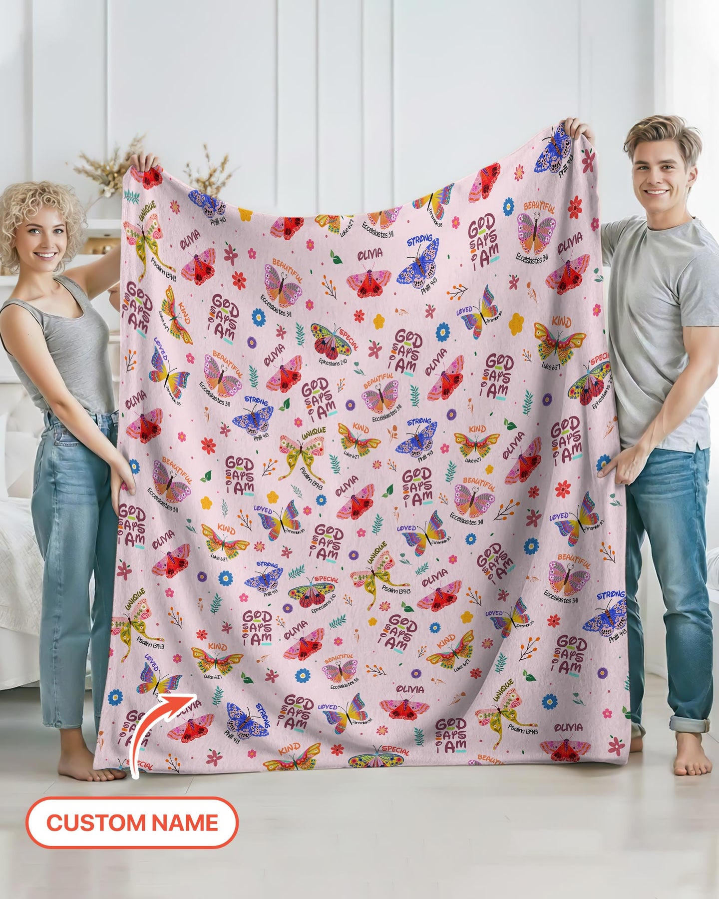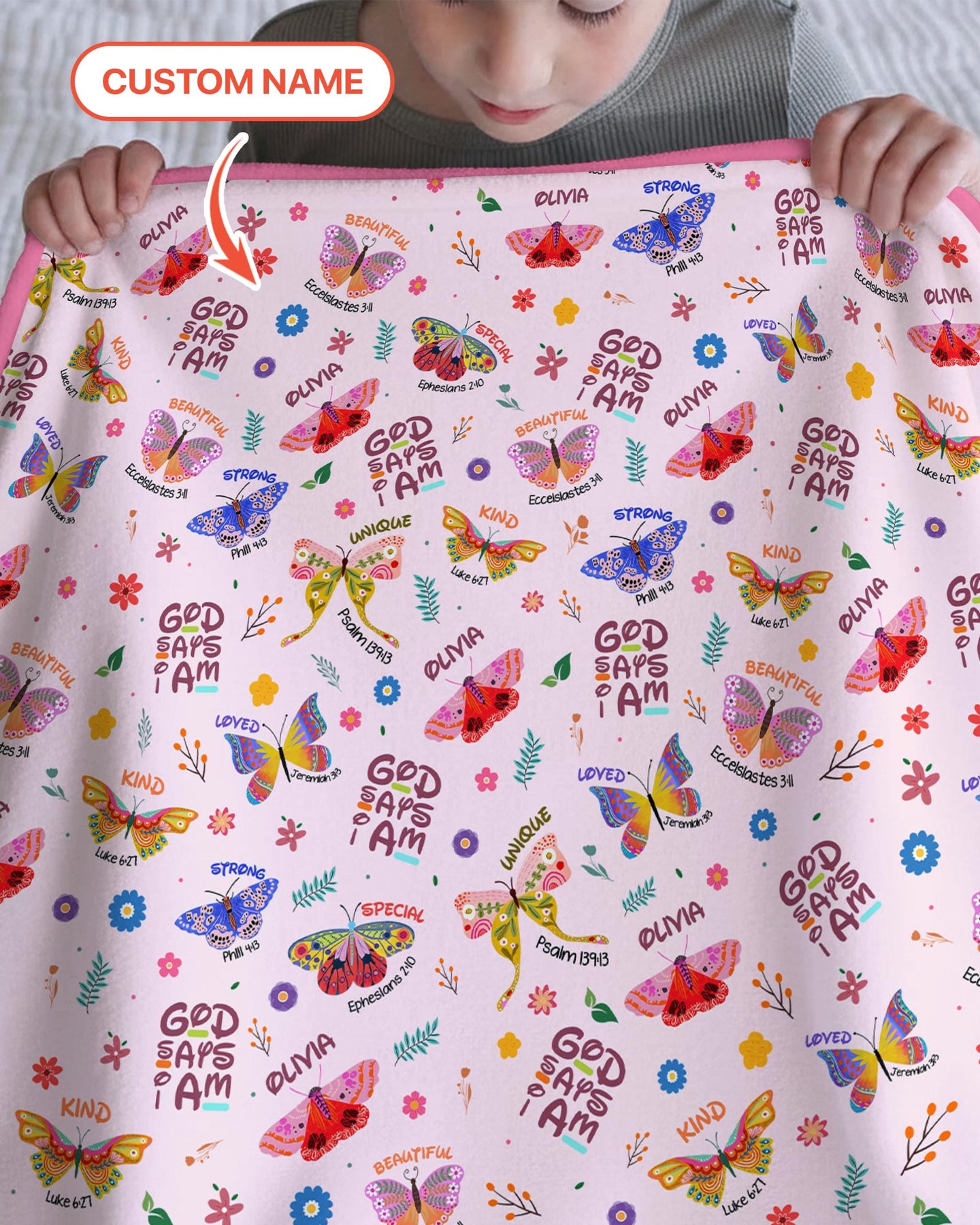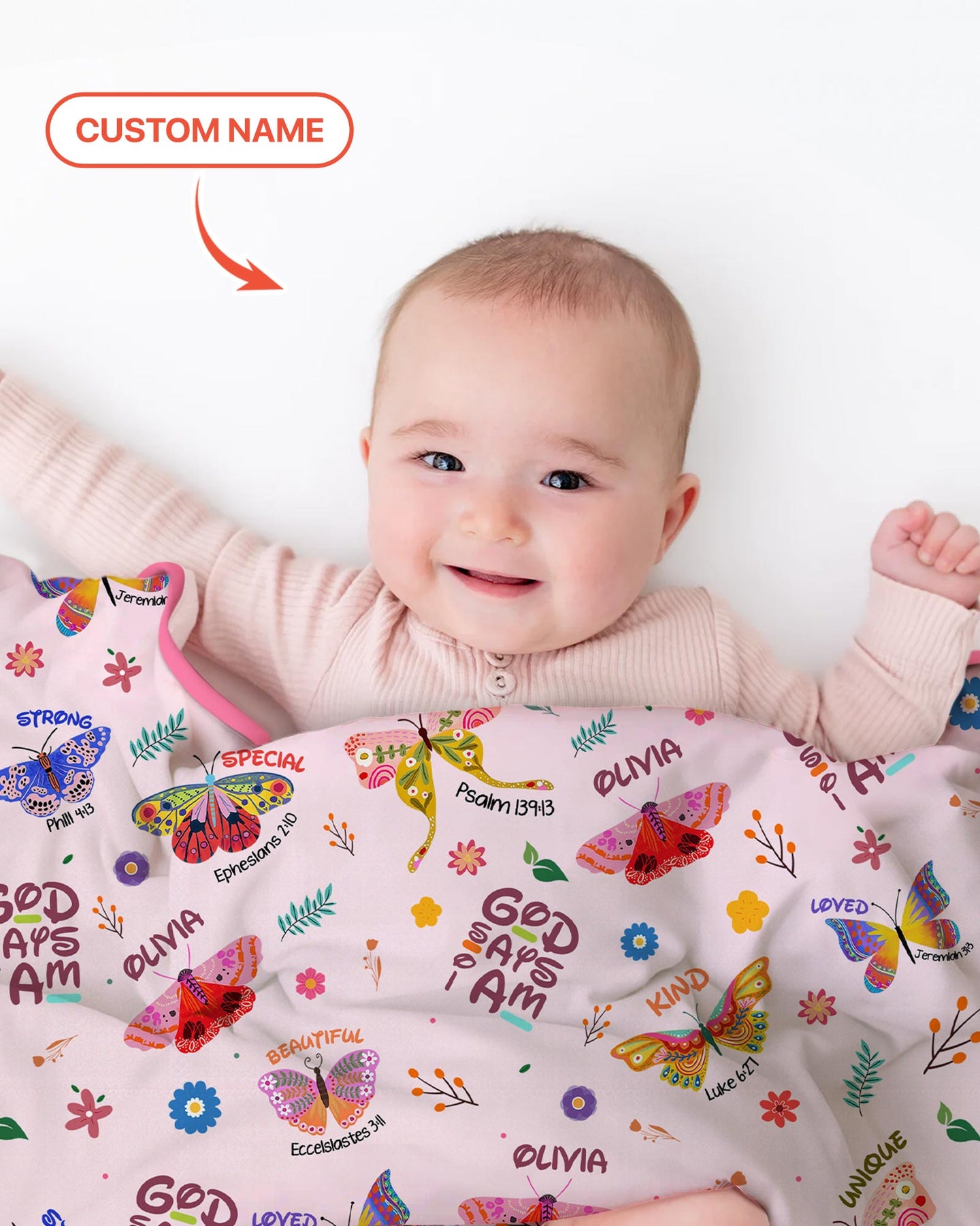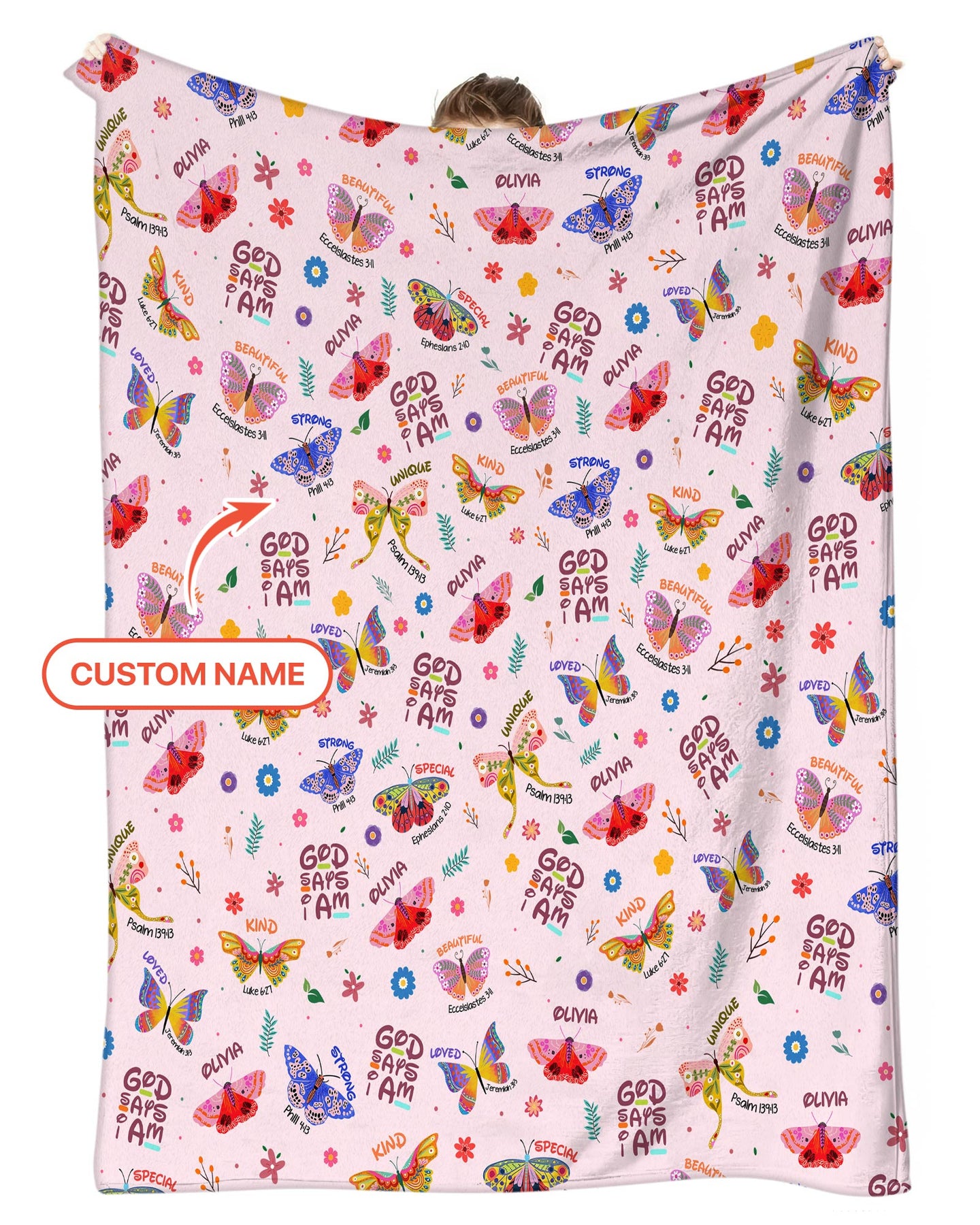 Benutzerdefinierter Name Gott sagt, ich bin Schmetterling Kleinkinddecke
