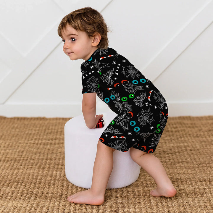 Glow In The Dark Creepy Spiderweb Two Piece Short Sleeve Shorts Pajama Set , Glow In The Dark Creepy Spiderweb Two Piece Short Sleeve Shorts Pajama Set - 12-18M