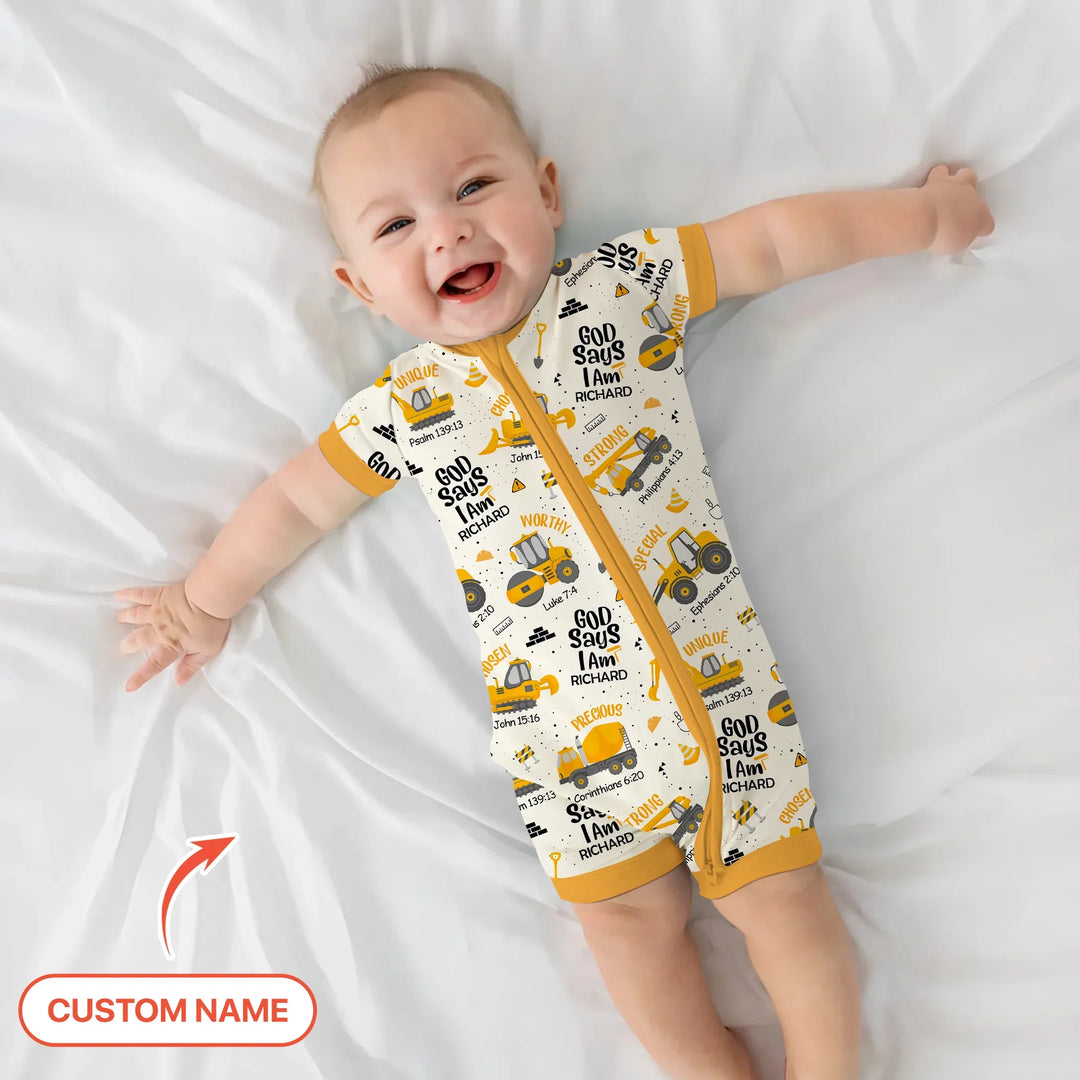 God Says I Am Custom Name Boy Two Piece Short Sleeve Pajama Set , God Says I Am Custom Name Boy Two Piece Short Sleeve Pajama Set - 12-18M