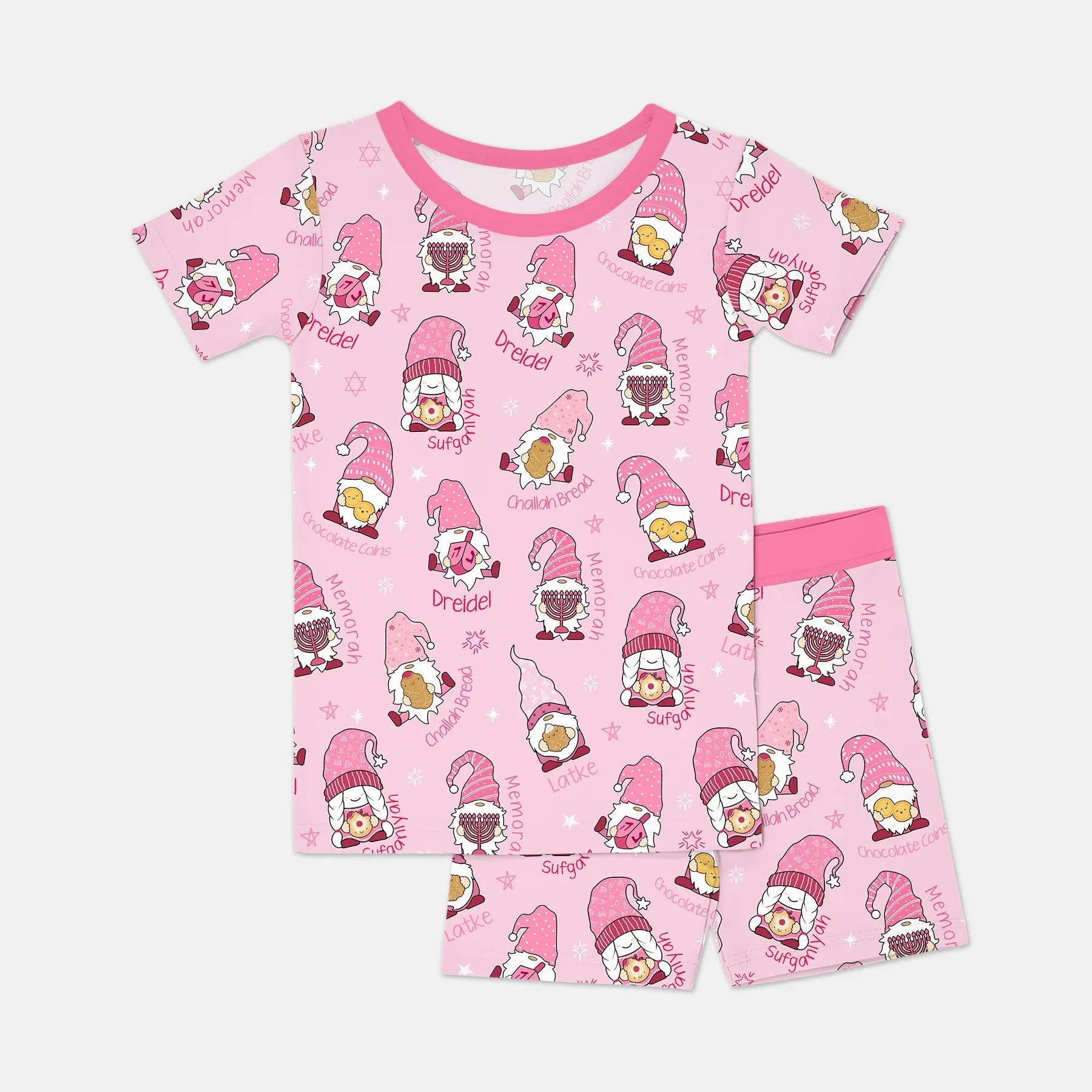 Celebrates the joy of the Festival of Lights with a playful twist! Featuring adorable gnomes, menorahs, dreidels, and festive treats, these cozy bamboo pajamas come in soft pink and blue hues—perfect for lighting candles, spinning dreidels, and making family memories all Hanukkah long.