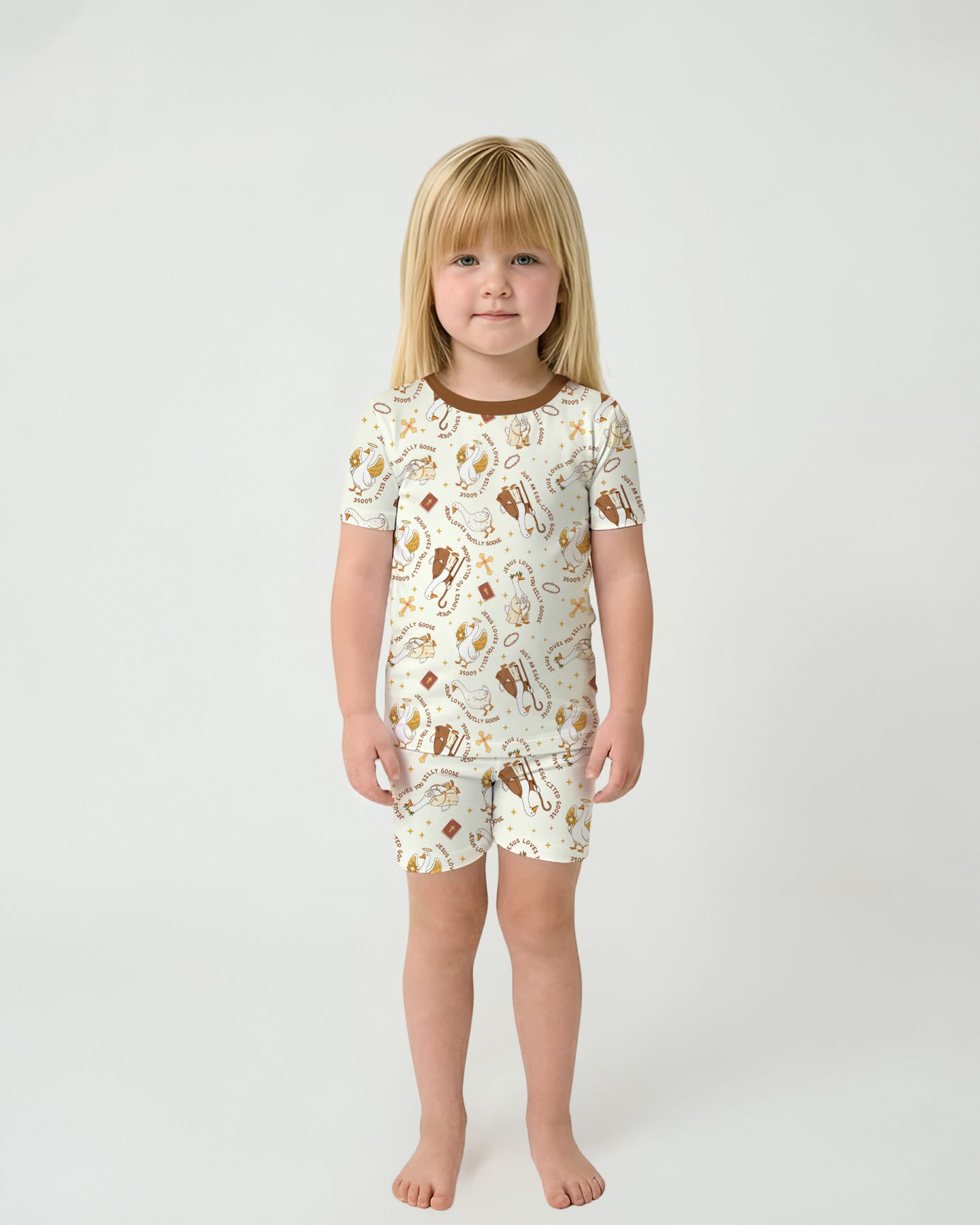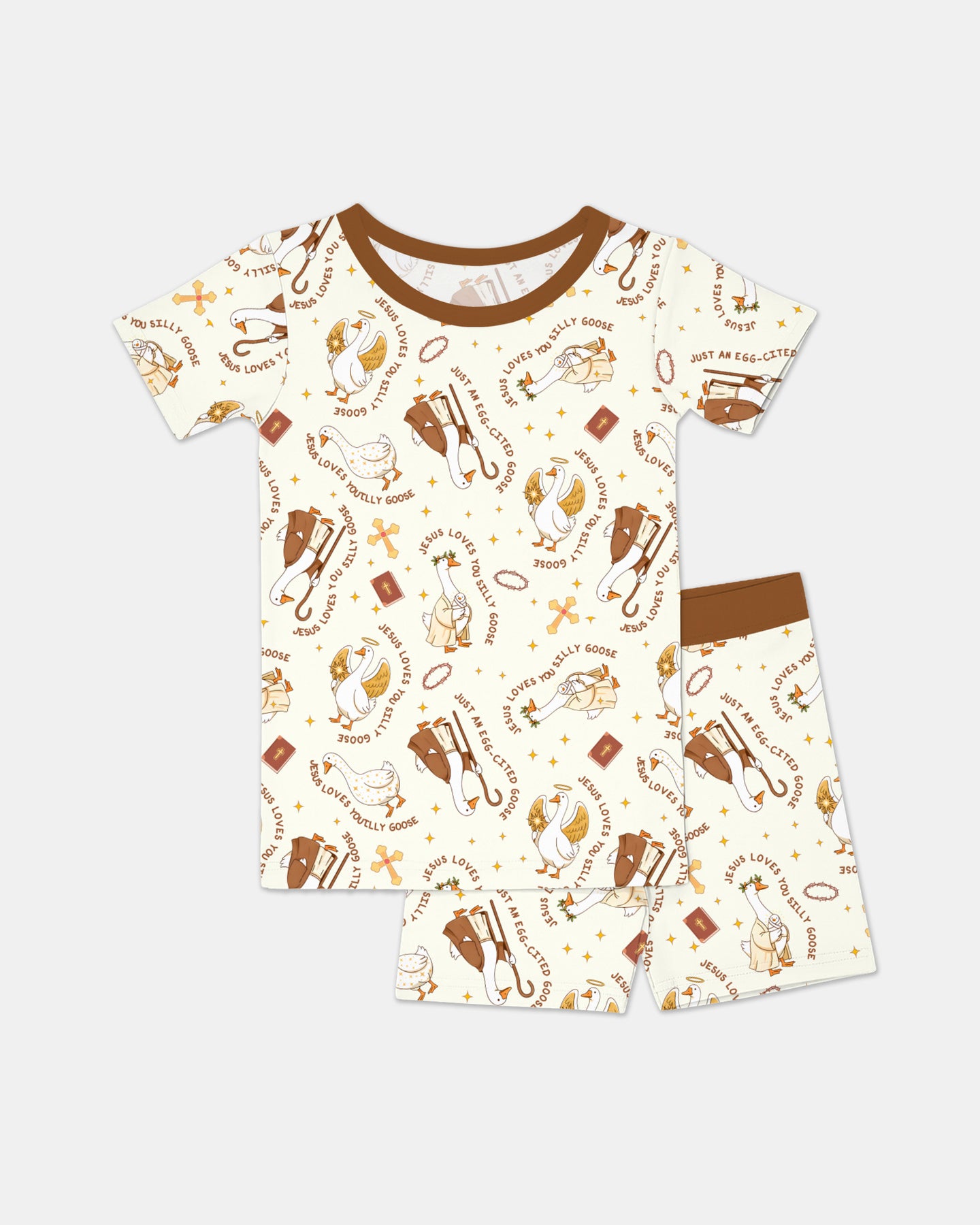 Jesus Loves You Silly Goose Bamboo Zippies & PJ Sets are a sweet and playful way to celebrate faith-filled moments 🕊️✨ Featuring charming geese dressed in biblical-inspired outfits, crosses, Bibles, and the cheerful phrase “Jesus Loves You Silly Goose,” this heartwarming pattern blends encouragement with a touch of silly fun.