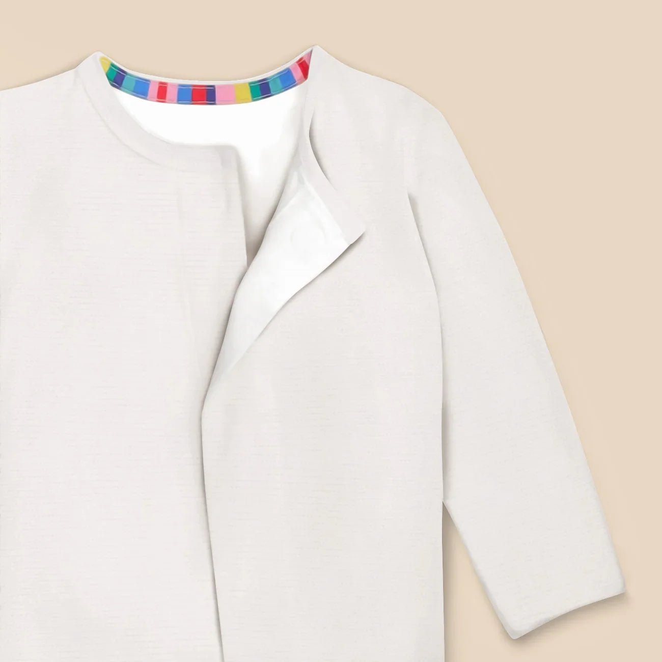 • Magnetic closures: magnets line the seam from the neck to the crotch