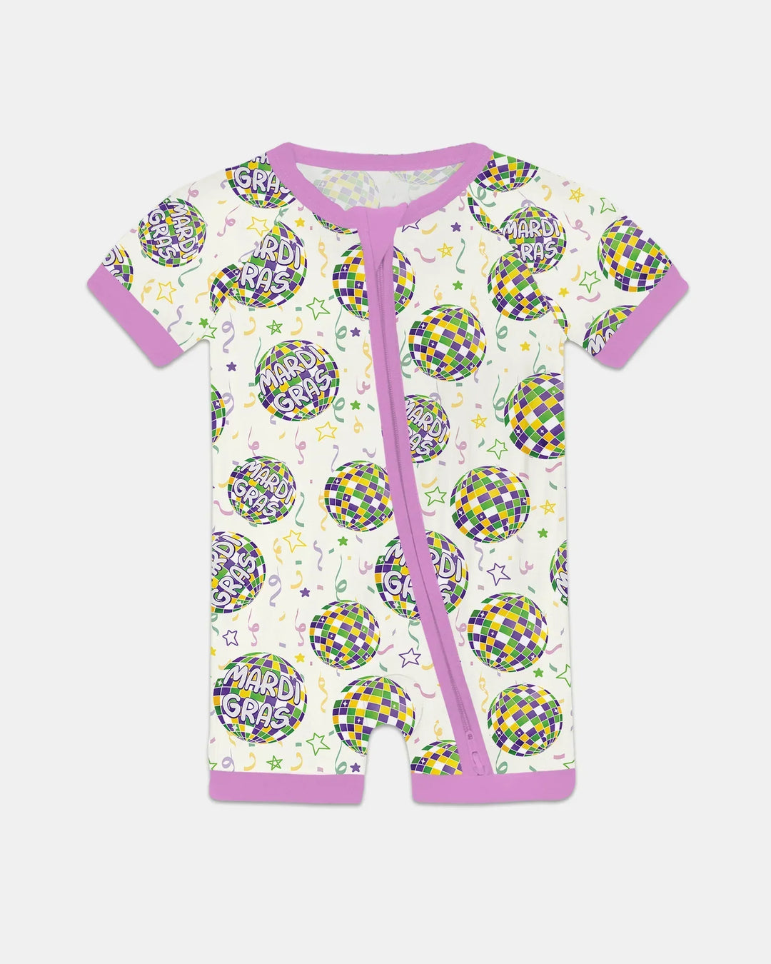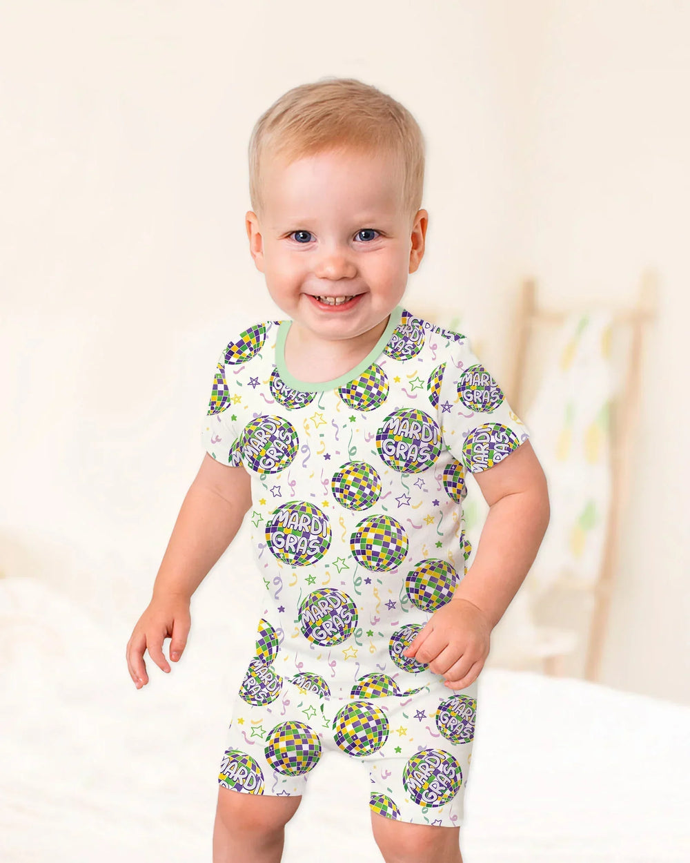 Celebrate in style with our Mardi Gras Collection, featuring vibrant parade-inspired prints in festive purple, green, and gold—made with soft, breathable fabric for cozy sleep, play, and everyday fun.