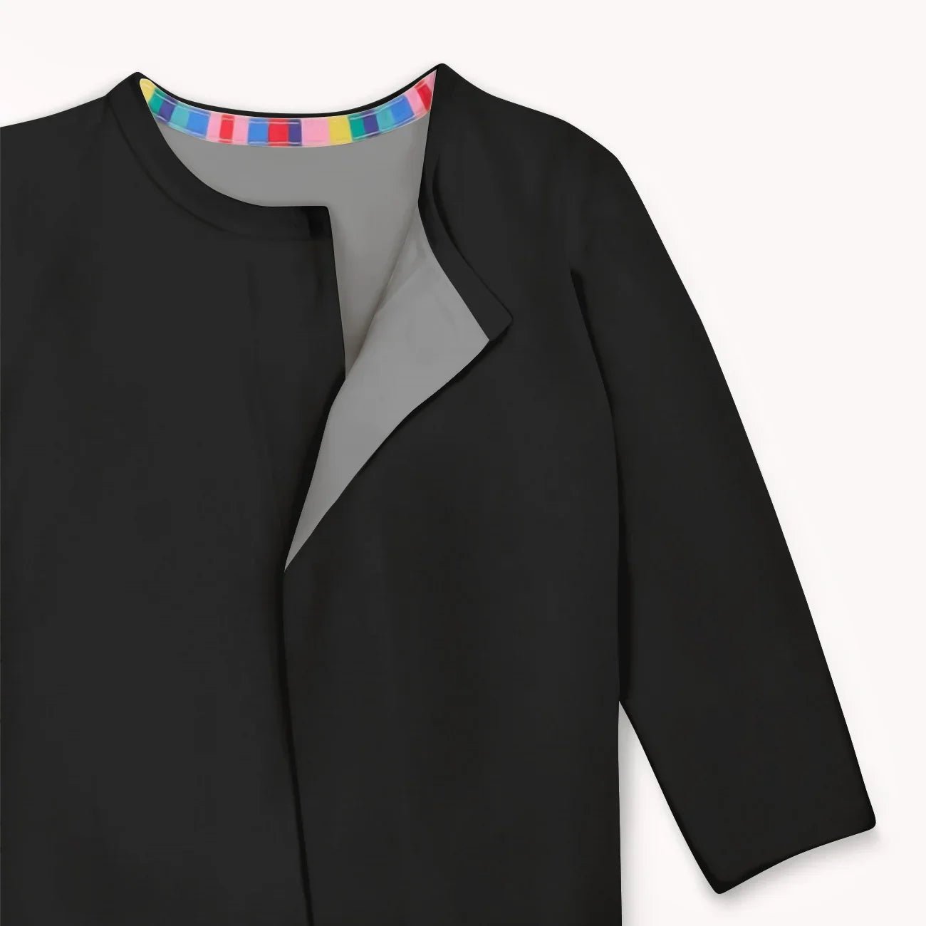 - Magnetic closures: magnets line the seam from the neck to the crotch