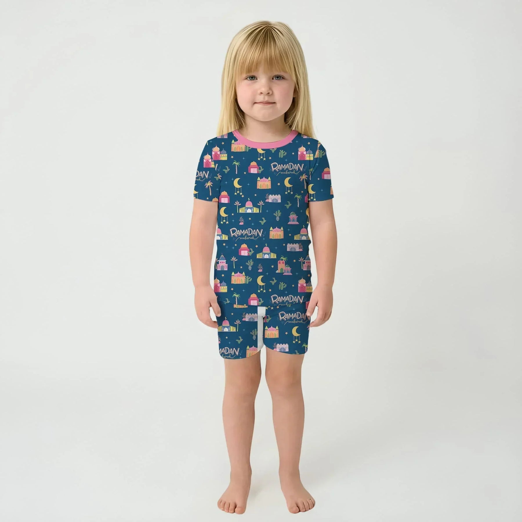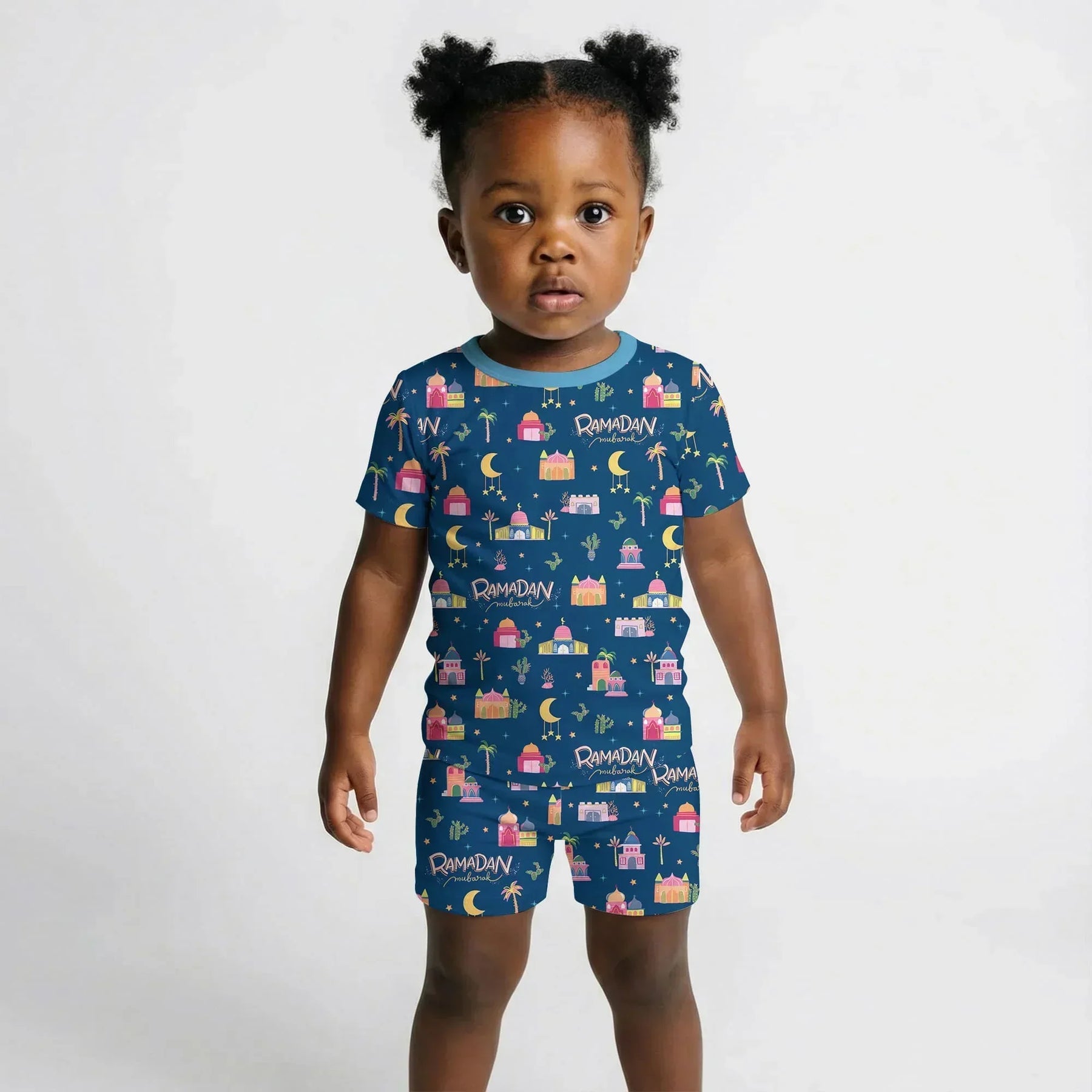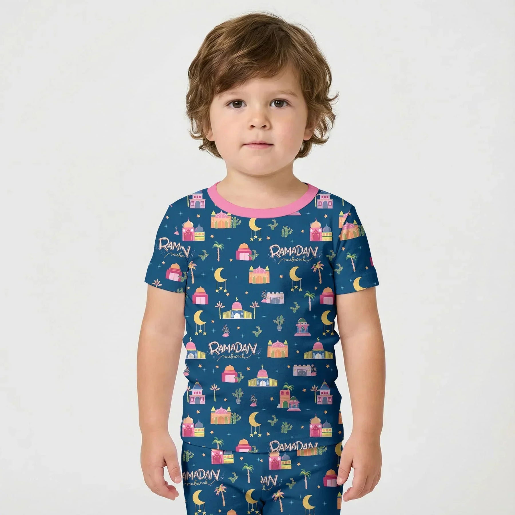 Celebrate Ramadan with our festive pajama collection, featuring charming mosque, moon, and star prints in rich, joyful colors.