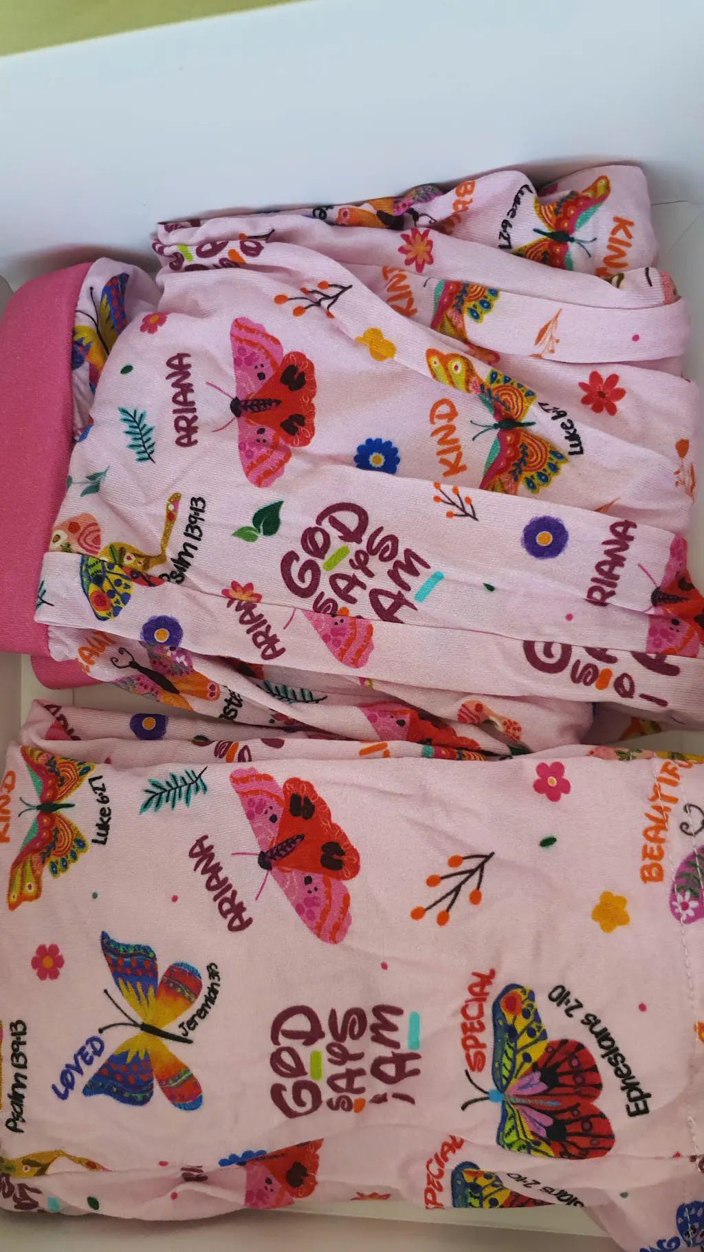 It's very comfortable to wear, not at all restrictive, and suitable for both sleeping and relaxing at home. The butterfly design and the phrase "God Says I Am Butterfly" are inspiring and very feminine. Moreover, this set gently hugs the body but remains comfortable, making it well worth the price.