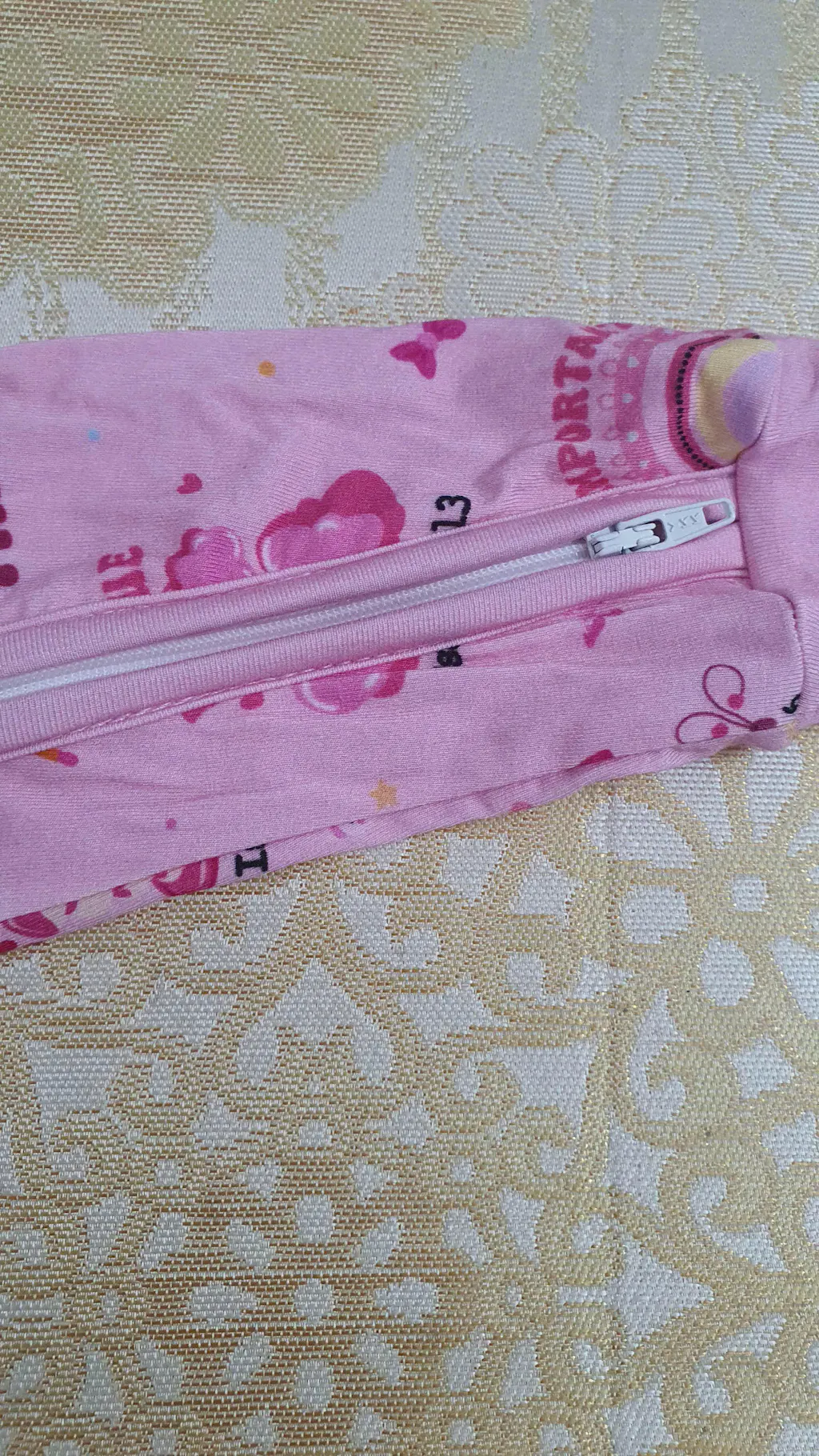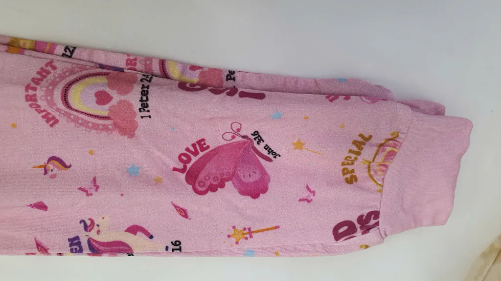 The soft cotton fabric is gentle and won't irritate your baby's skin. The print is very delicate, accompanied by a gentle heart pattern. I bought it as a birthday gift for my daughter, and she loves wearing it and is very proud of it. The shirt has a loose, comfortable fit, and the pants have an elastic waistband. The shop delivered quickly and packaged carefully. Very satisfied.