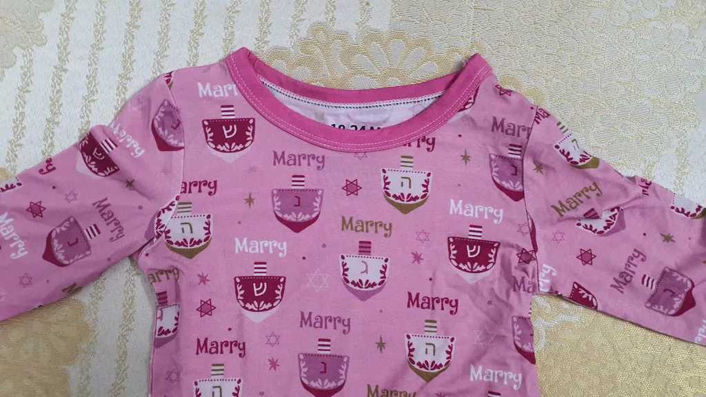 The dreidel designs are very lively and fun. My family's name is hand-embroidered very finely and sharply on the pocket. The flannel fabric is thick and warm, very comfortable to wear. The personalized service was quick, and the shop provided enthusiastic support. It was so meaningful for the whole family to wear matching outfits to celebrate Hanukkah. I will recommend this shop to my friends!