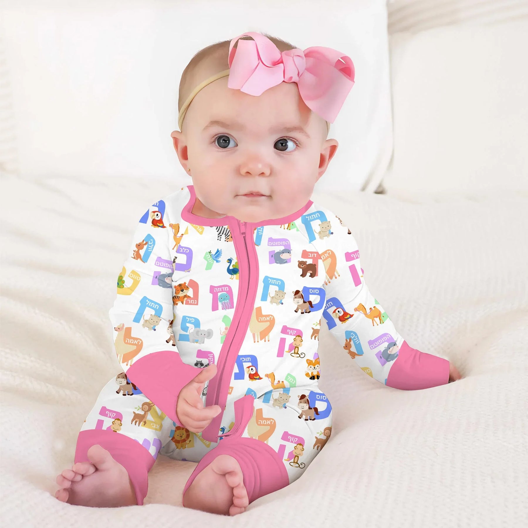 Bring learning and laughter to bedtime with the Hebrew Alphabet Animal Friends collection! Each letter of the Alef-Bet comes to life with a playful animal — from lions and elephants to foxes and flamingos — turning every pajama into a fun, colorful learning adventure.