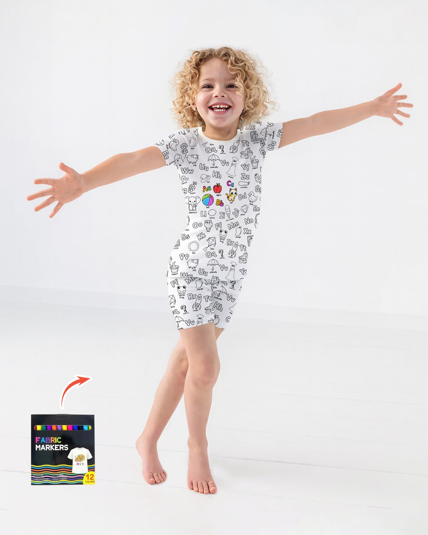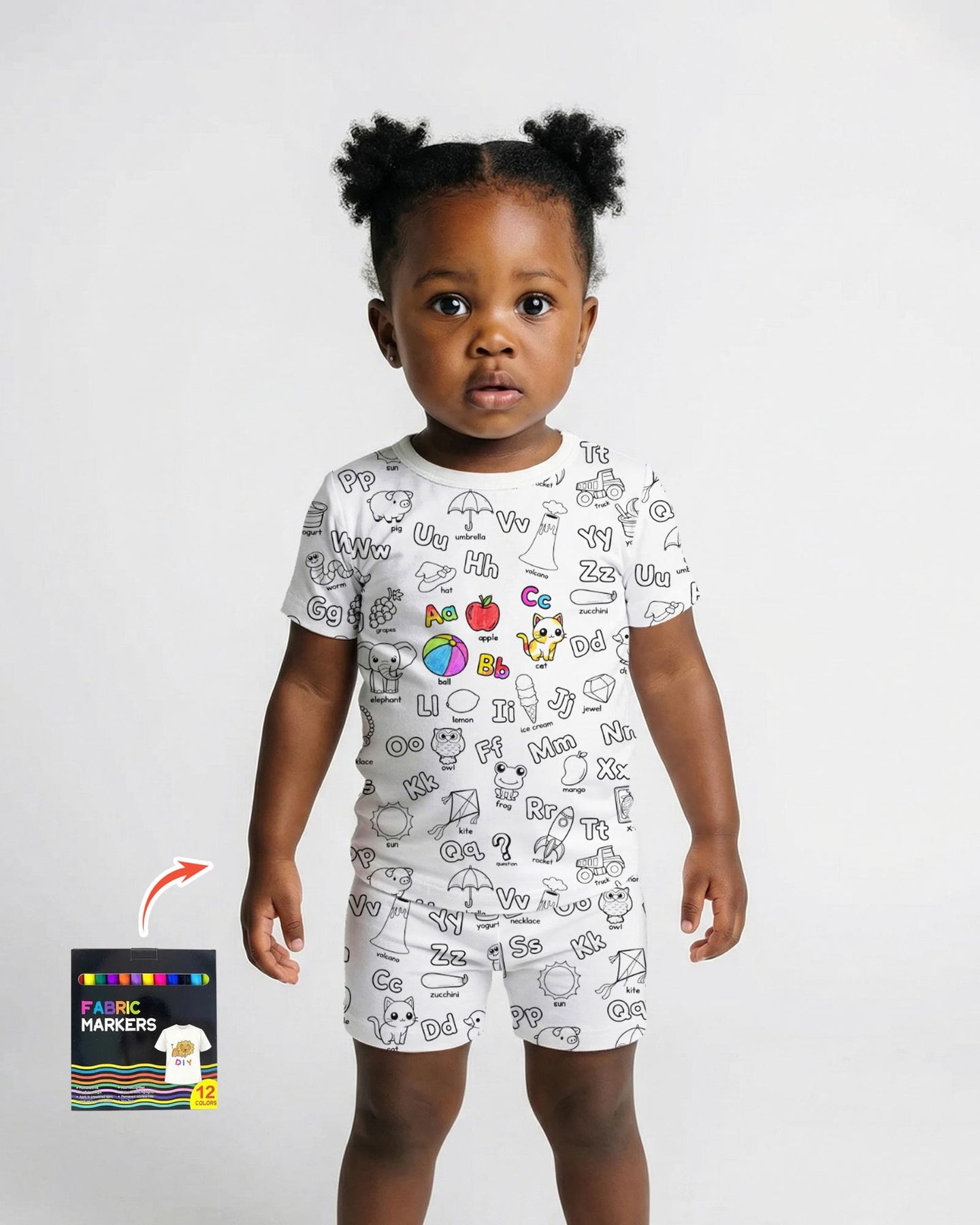 All Colorable Alphabet Two Piece Short Sleeve Shorts Pajama Set