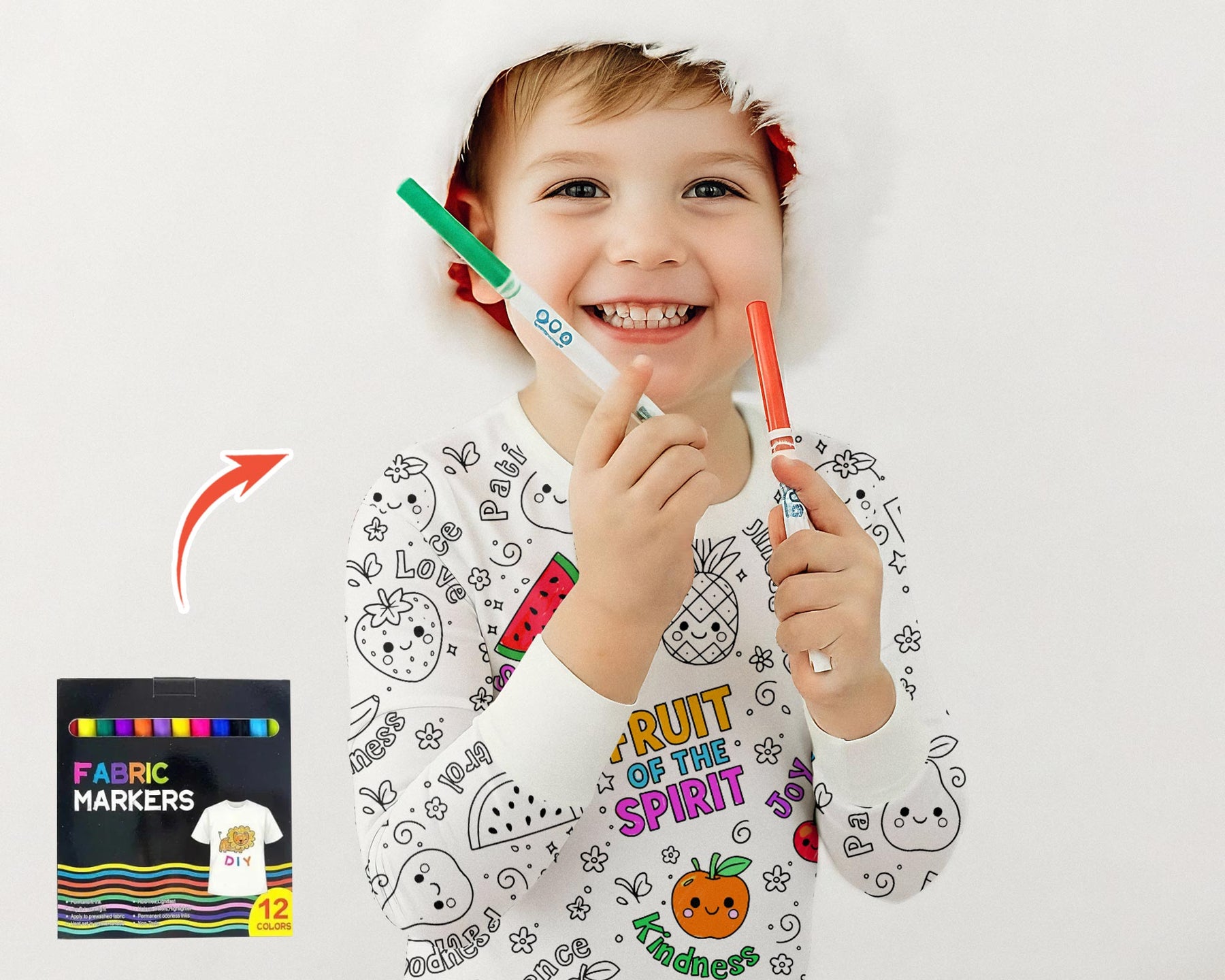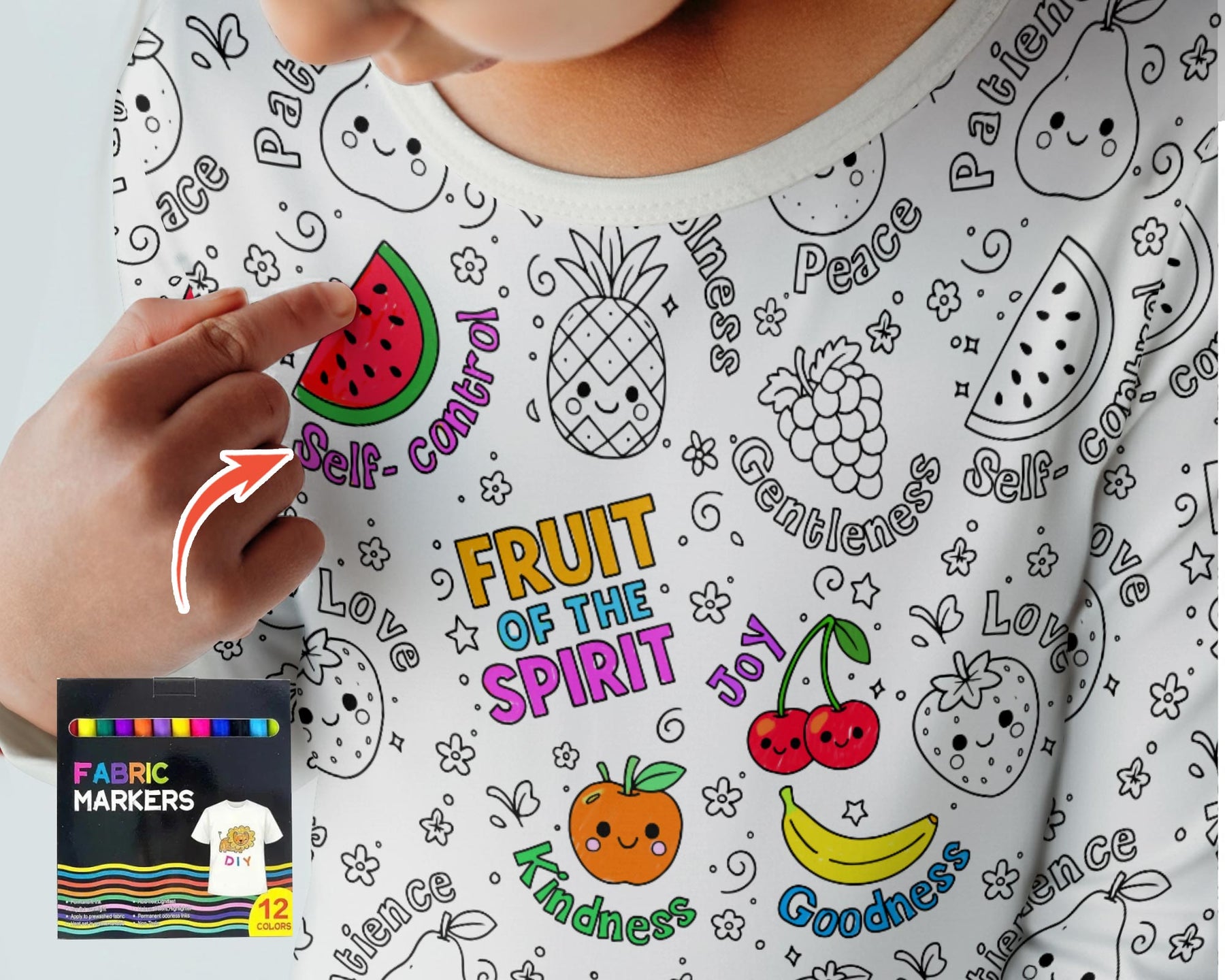Spark creativity and endless fun with our "All Colorable Fruit of the Spirit"! Made from ultra-soft, breathable bamboo fabric, this piece is designed as a blank canvas where kids can freely color, decorate, and bring their imagination to life.