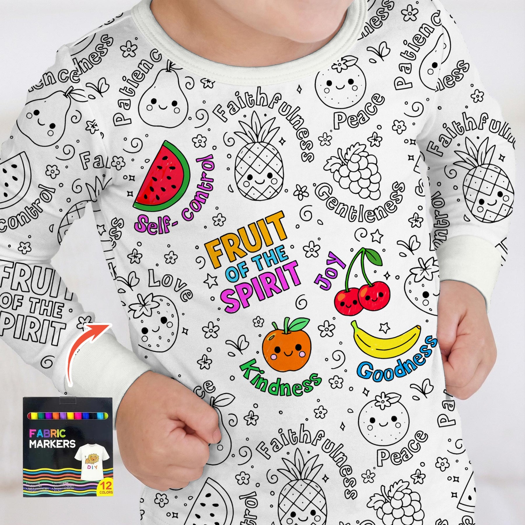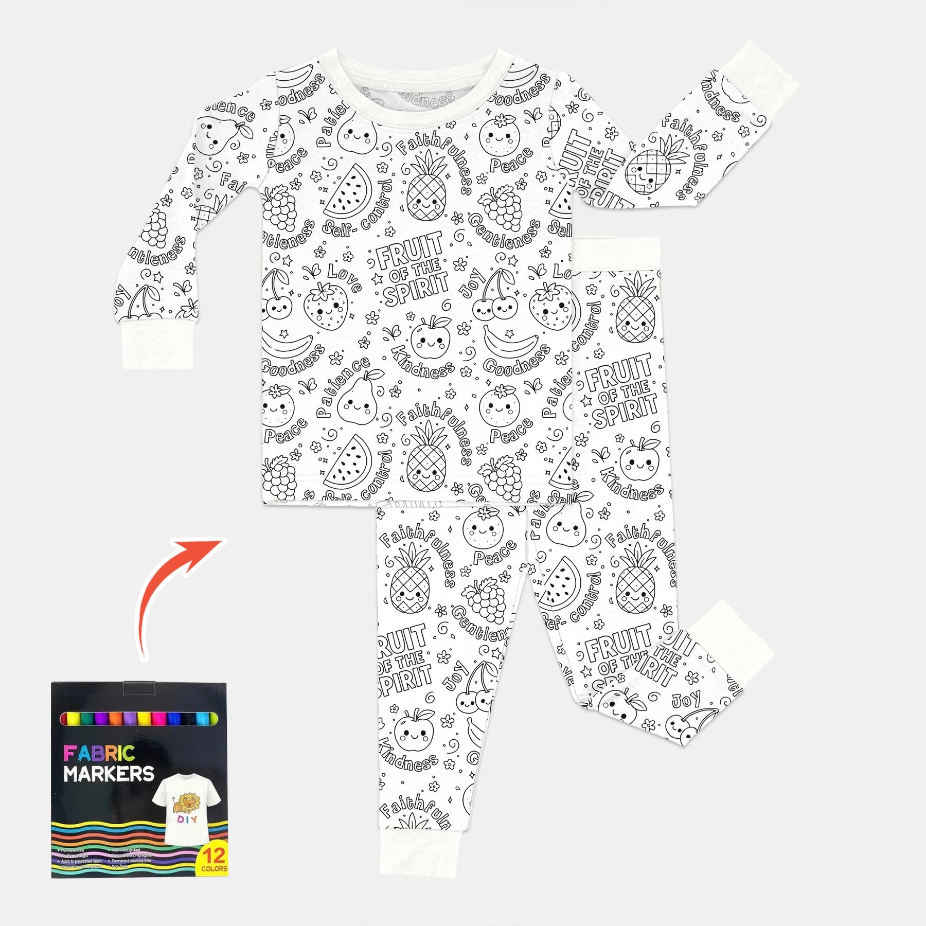 All Colorable Fruit of the Spirit Two Piece Long Sleeve Pajama Set