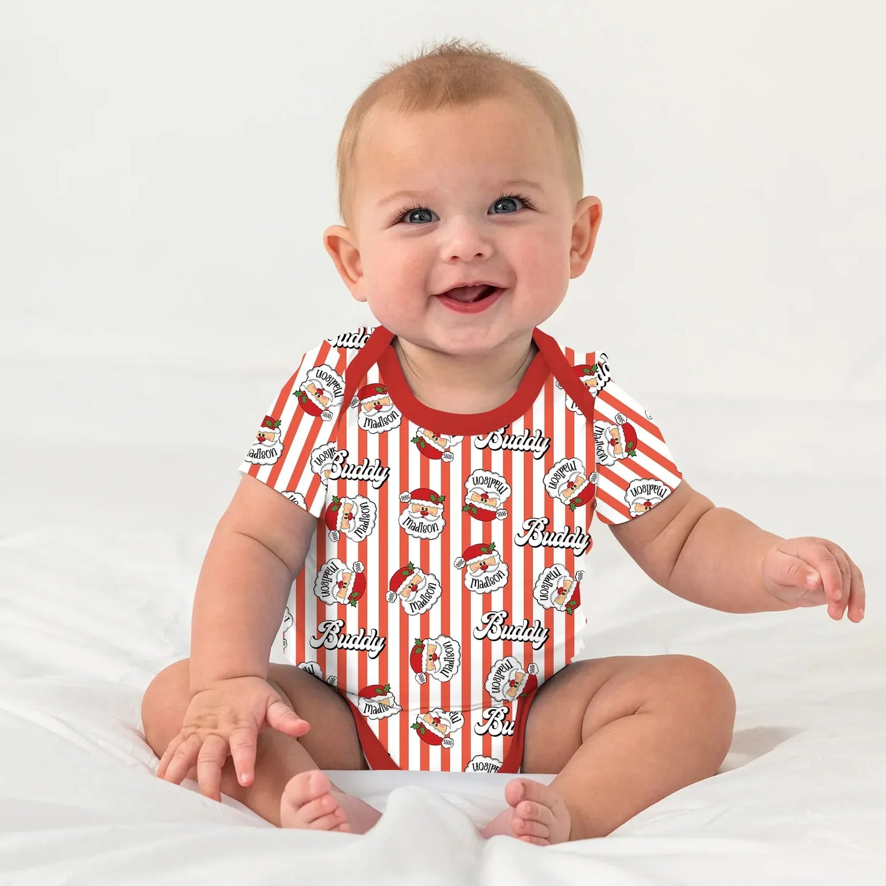 Meet the Santa Buddy Stripes collection—bright, playful, and fully customizable. Add any name to this cheerful Santa design for a fun, personalized holiday look.