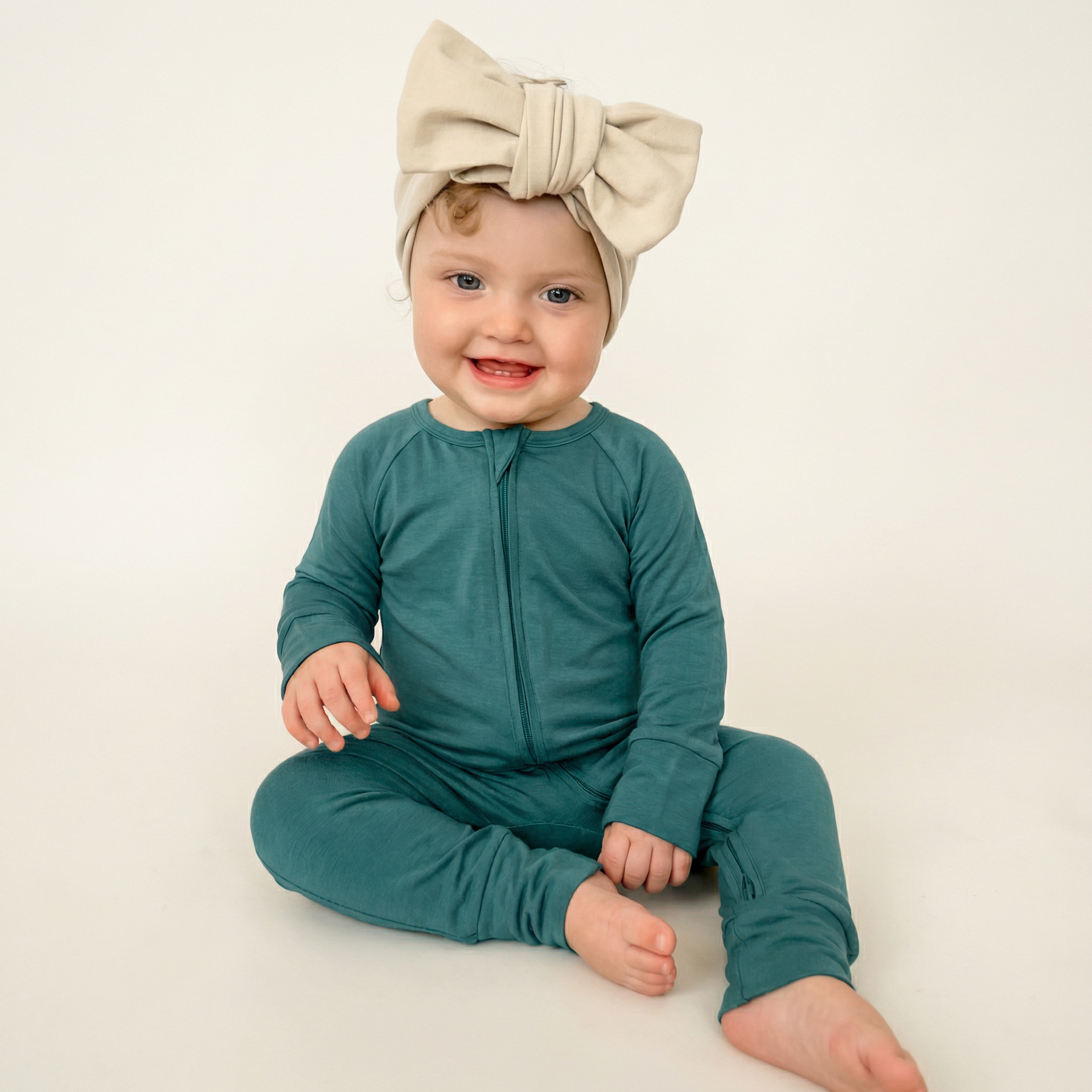 Classic and versatile, our cadet blue convertible romper is made from soft bamboo viscose. It ensures gentle comfort, with a double zipper for hassle-free diaper changes and fold-over mittens for added protection.