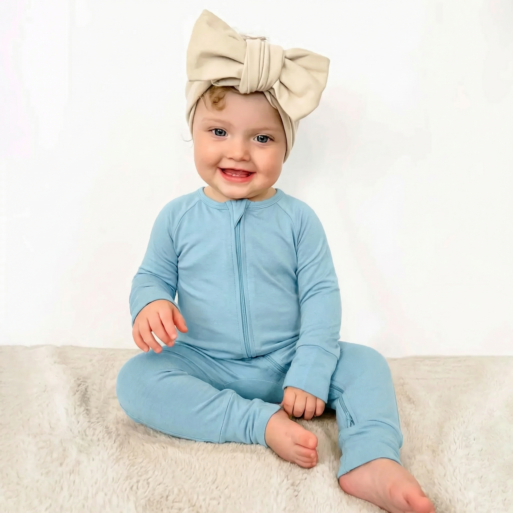 Keep your little one comfortable and stylish in our light blue convertible romper. Made from premium bamboo viscose, it's soft on delicate skin and features a double zipper for easy diaper changes. The fold-over mittens add extra convenience for bedtime.