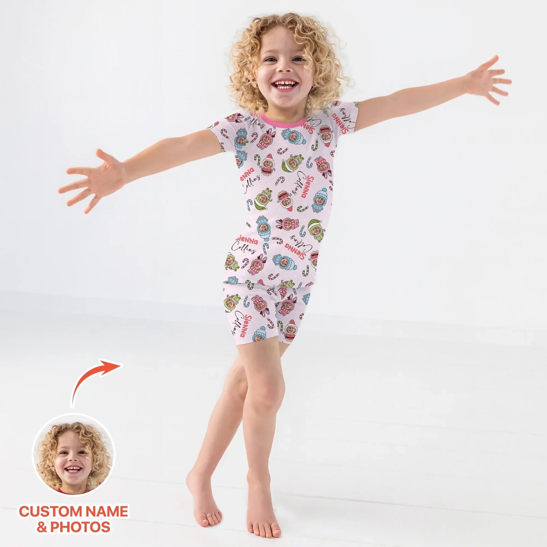 Custom Baby Photo Christmas Bear Two Piece Short Sleeve Shorts Pajama Set