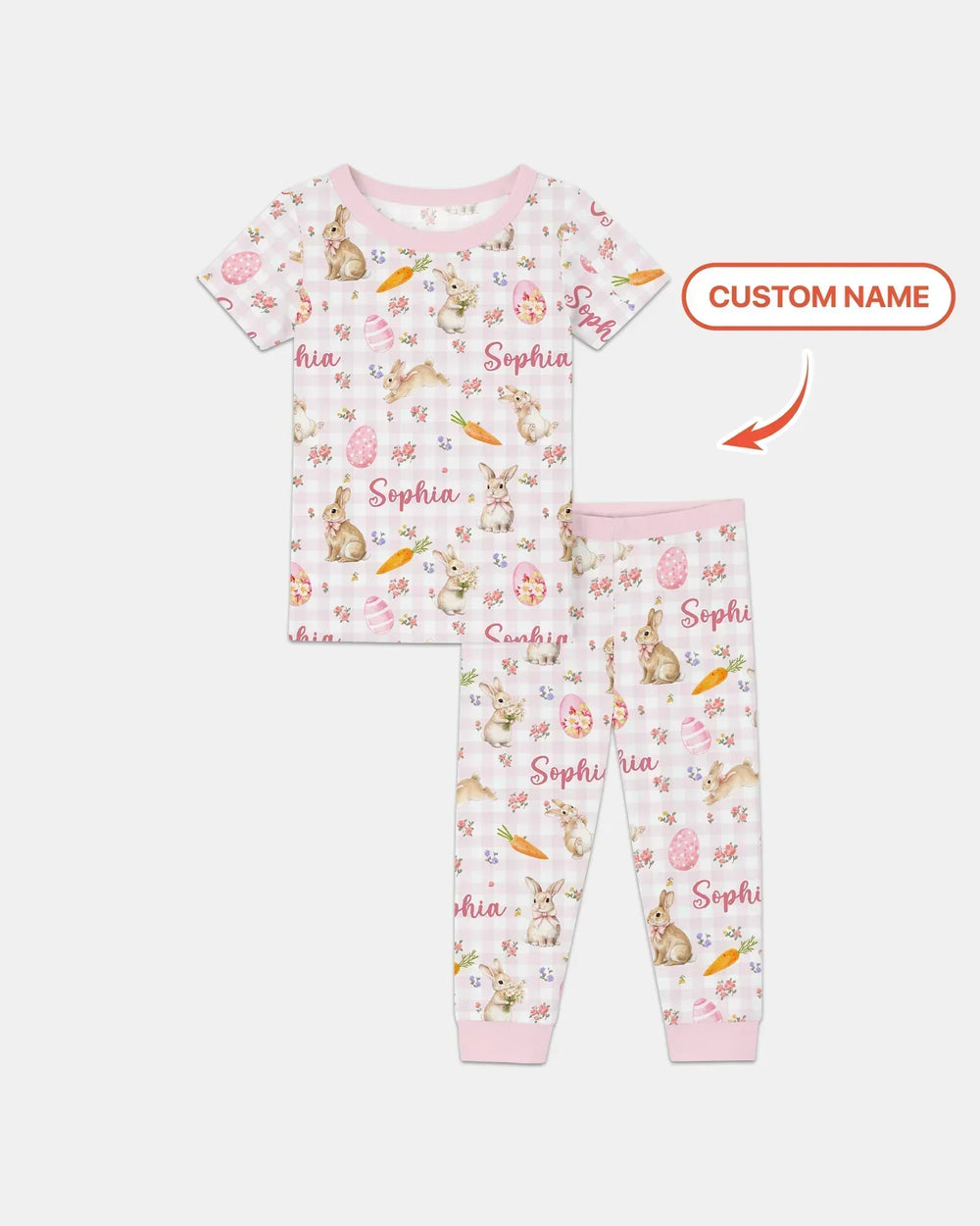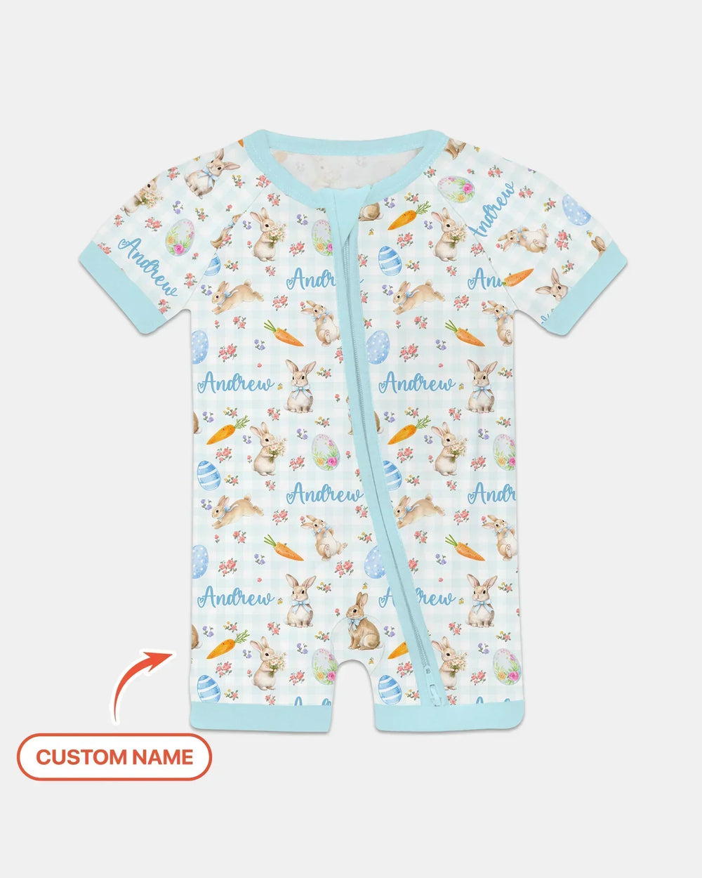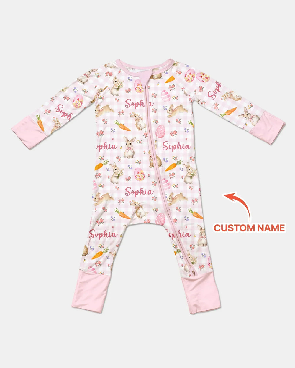 🌸🐰💗Custom Name Bunny Garden Bamboo Zippies and PJ Sets are a springtime dream for little ones. This sweet pattern features adorable bunnies, pastel Easter eggs, carrots, and delicate florals, beautifully personalized with your child’s name for an extra-special touch. Made from ultra-soft, breathable bamboo fabric, these pajamas are gentle on sensitive skin and perfect for cozy nights, playtime, and seasonal celebrations. A charming and comfy favorite for spring, Easter, and everyday snuggles