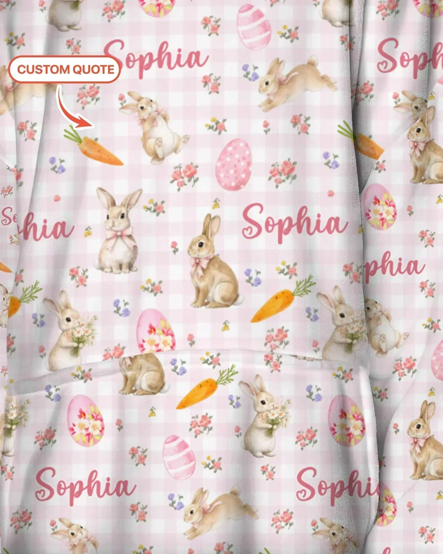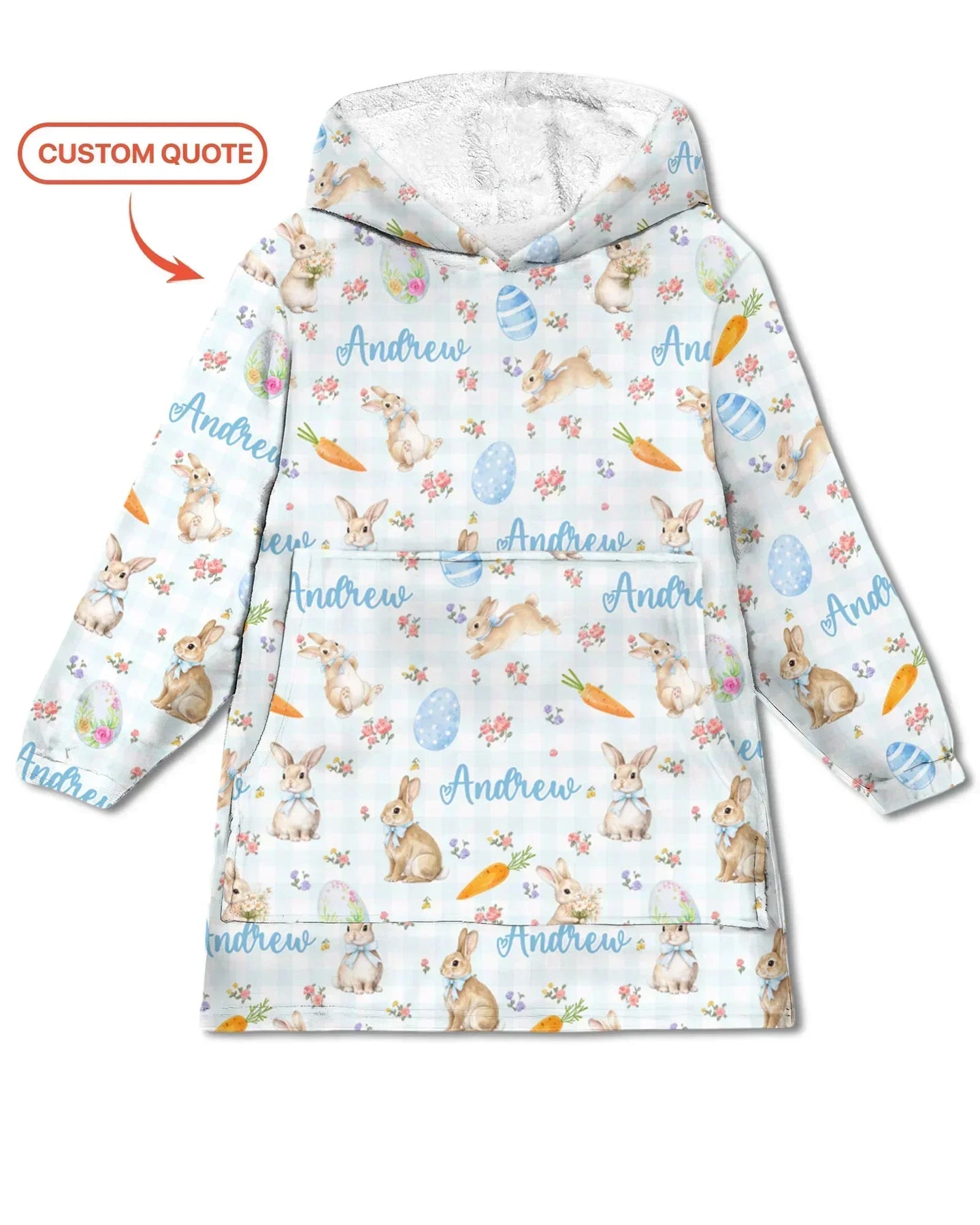 Custom Name Bunny Garden Blanket Hoodie